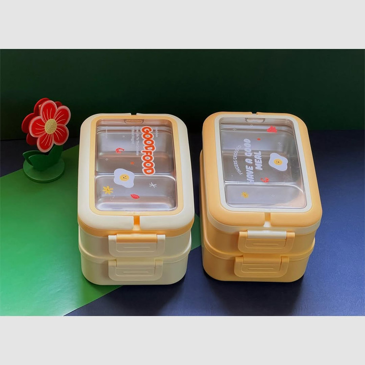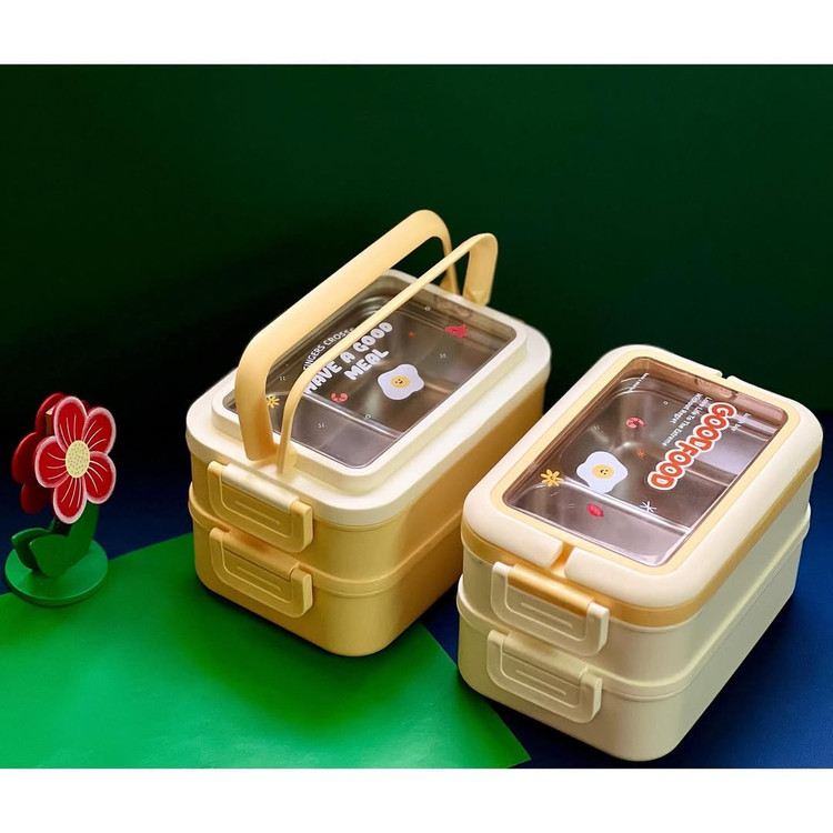 خب خب یه لانچ باکس اوردم براتون که اگر از نزدیک میدیدینش عاشقش میشدین از بس که با کیفیتهههه لانچ باکس دو طبقه استیل دسته دار یه قیمتی براتون آوردم که حظ کنید ابعاد: ارتفاع:11.5cm طول:19.5cm عرض:13cm دارایاستیلجداشونده(در هر دو طبقه) BPA FREE. و مواد مضر از خود بروز نمیدهد و دارای استاندارد درجه خوراکی تحمل دمای بالا در واشر دارد و مخصوص حمل غذا های منسجم متریال ساخته شده با کیفیت دارای درجه خوراکی دوطبقه دسته دار(دستگیره های حمل آسان) طبقات مجزا در دورنگ زرد و سفید میتونید طبقات رو به صورت جدا و یک طبقه هم استفاده کنید