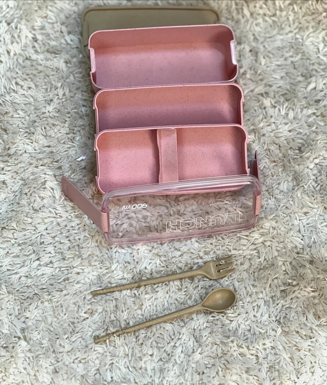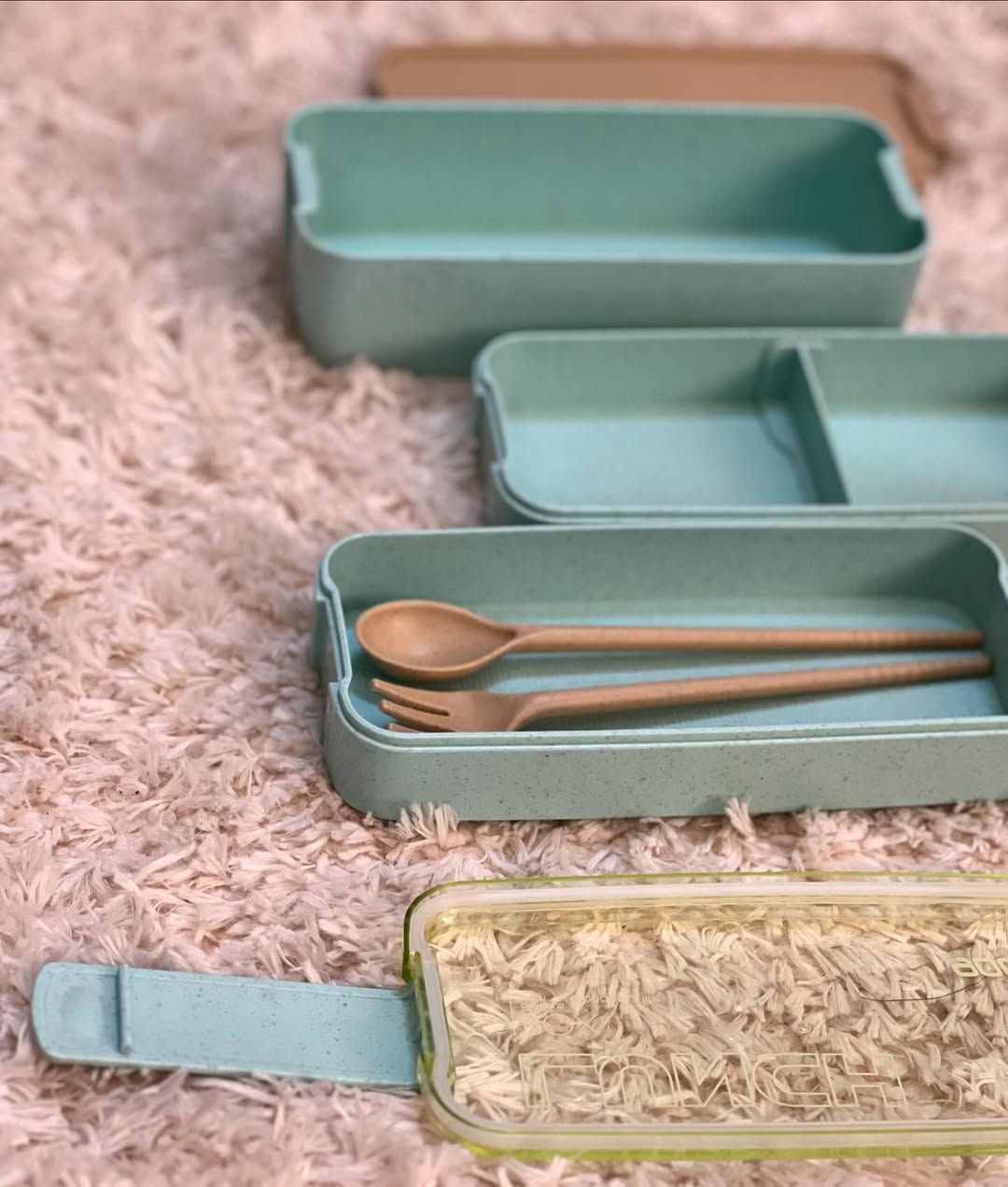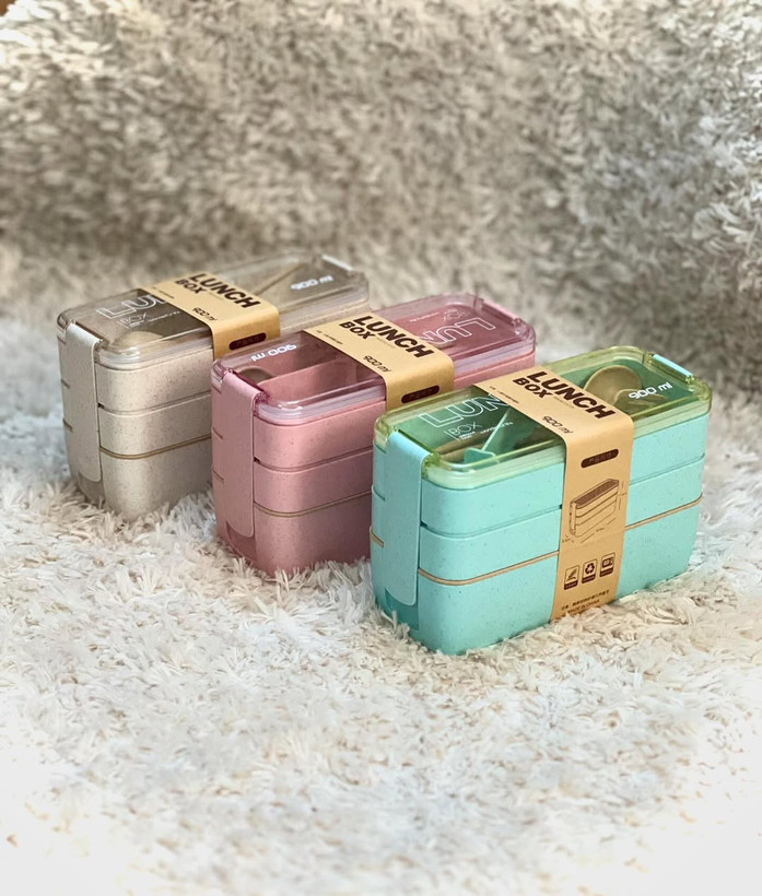 لانچ باکس سه طبقه قسمتی پینترستی گیاهی و دارای قاشق و چنگال