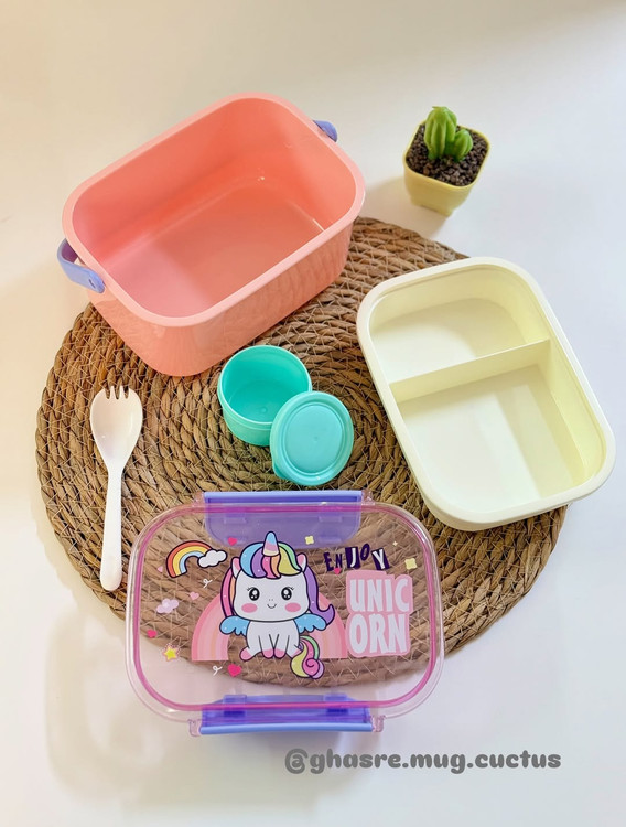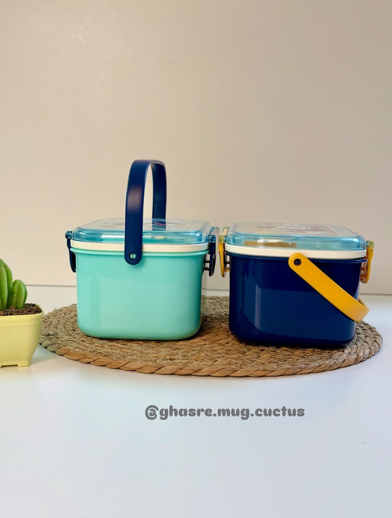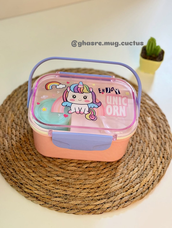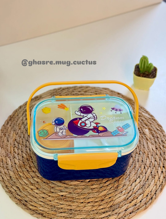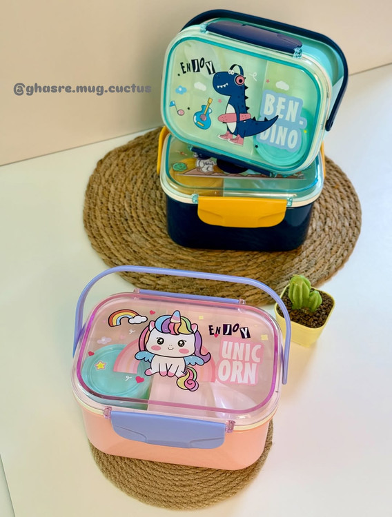 برای مدرسه عالیه راحت تو کیف جا میشه و تو محفظه بزرگترش میتونید داخلش لقمه سمبوسه اسنک و .. بذارید و طبقه بالاش مغز و میوه👌🏻😍♥️