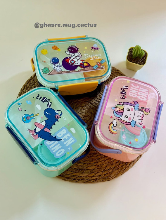 ظرف غذا دو طبقه کاسه دار یونیکورن فضانورد و داییناسور