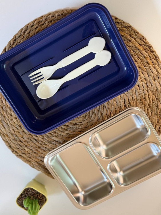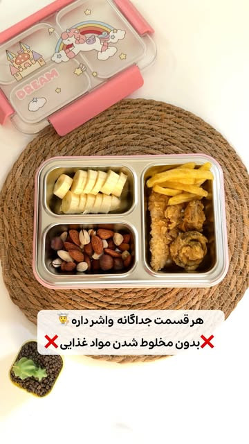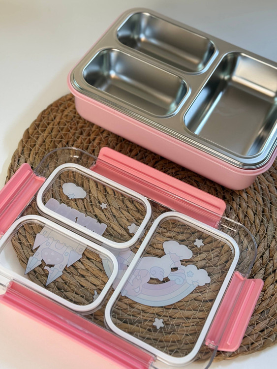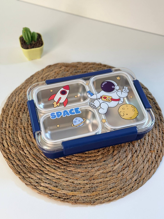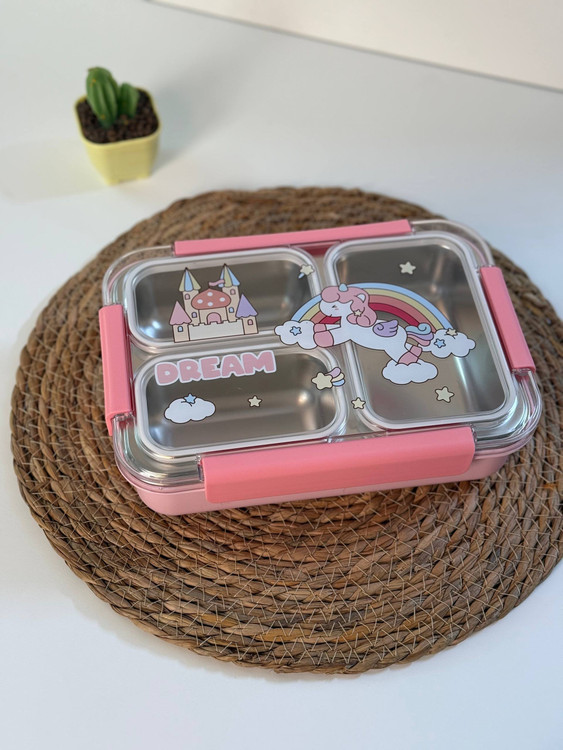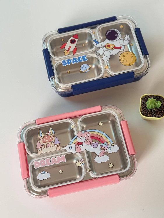 ظرف غذا واشر دار داخل استیل سه قسمته بدون مخلوط شدن یونیکورن و فضانورد کد ۱۲۸