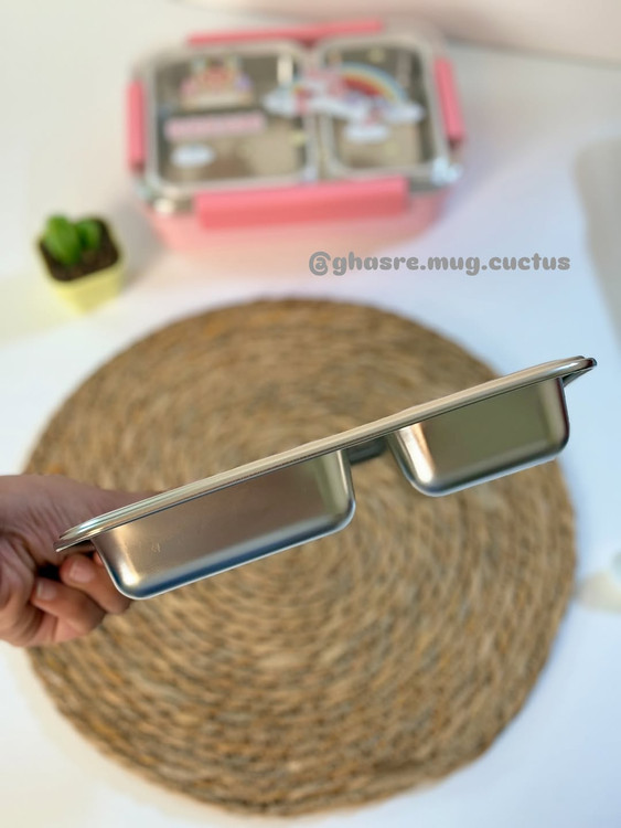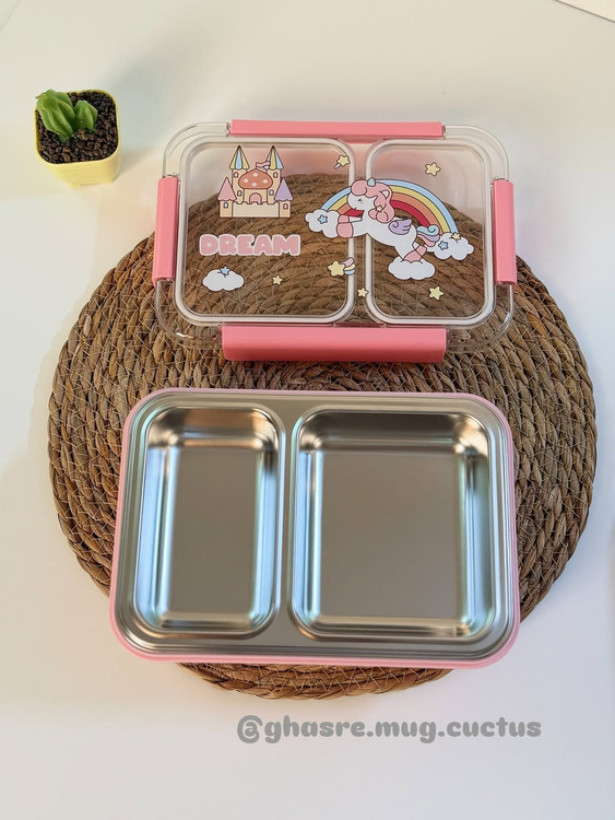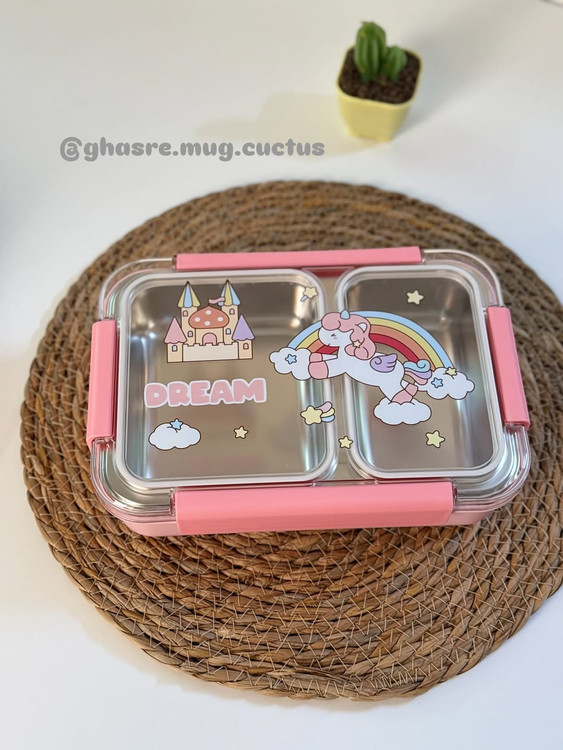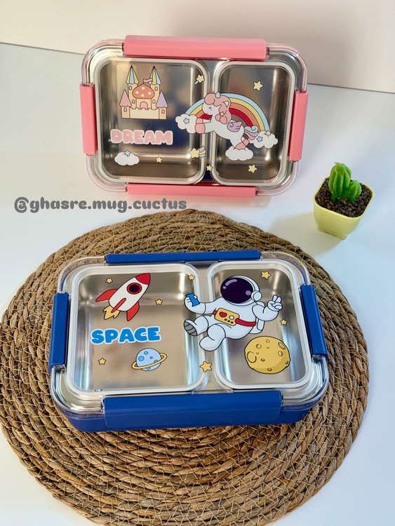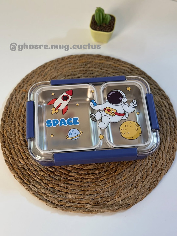 ظرف غذا داخل استیل بدون مخلوط شدن غذا دو قسمته واشر دار یونیکورن و فضانورد