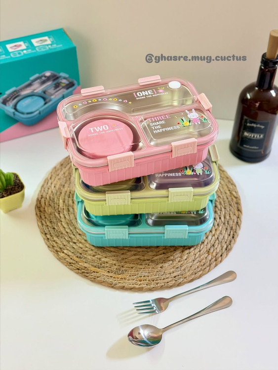 لانچ باکس واشر دار بدون مخلوط شدن خوراکیا کاسه دار به همراه قاشق و چنگال استیل کد ۱۳۰