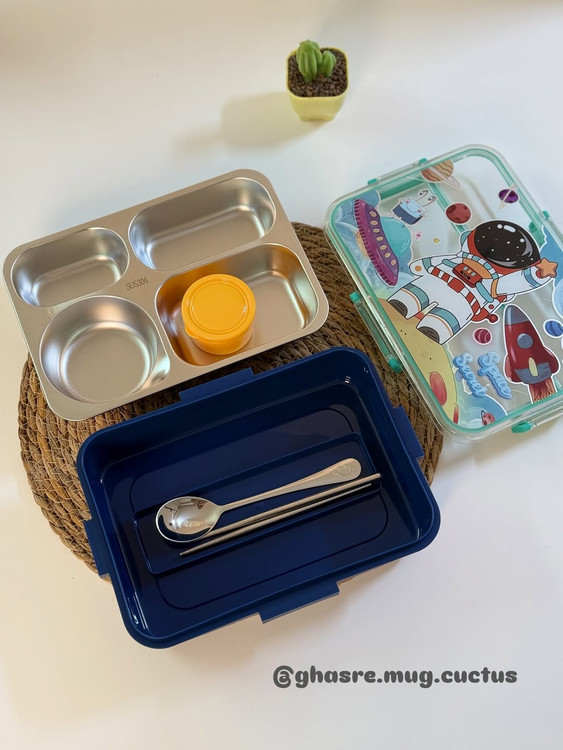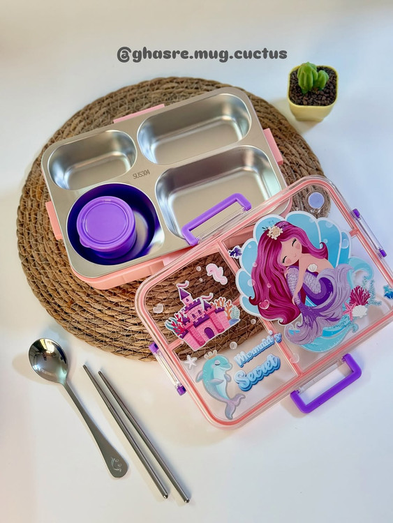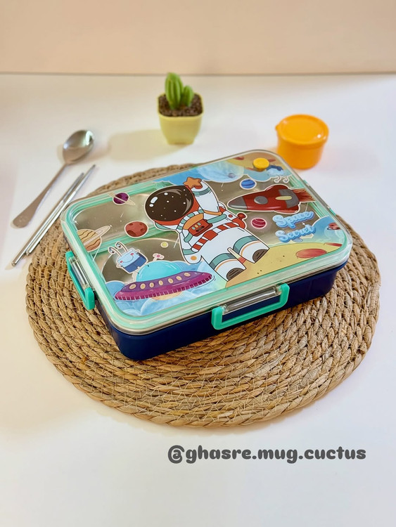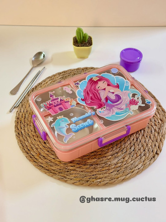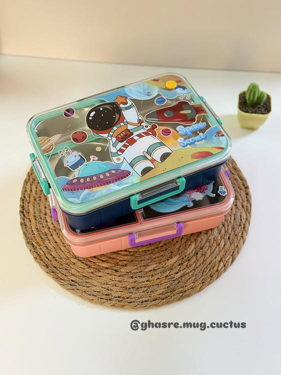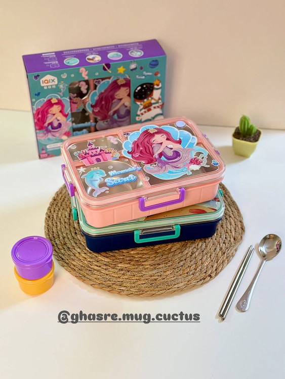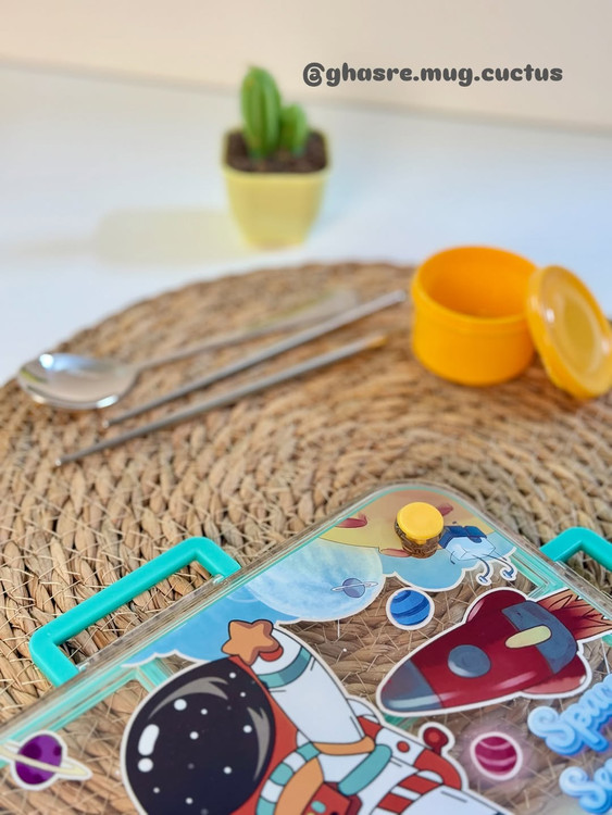 از یه لانچ باکس دیگه چی میخوای؟؟🗣️ظرف غذا قاطی نشووو هر قسمت جداگانه واشر داره😍در دو طرح متفاوت پری دریایی و فضانورد🧜♀️🚀🧑🚀
