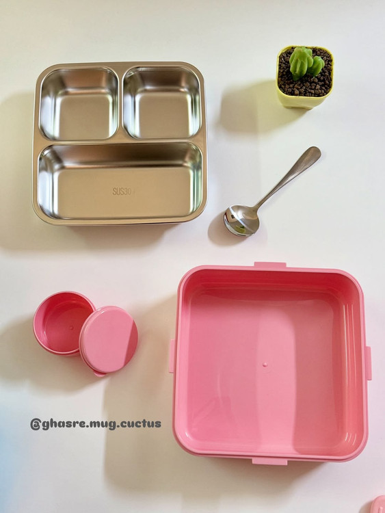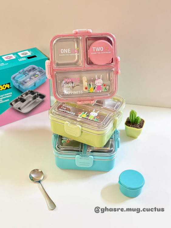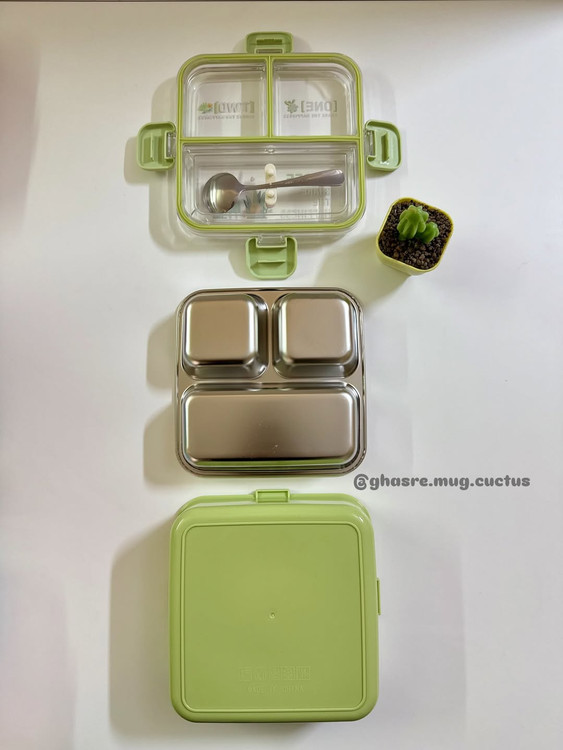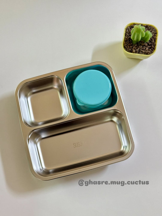 ظرف غذا سه قسمتی هست و از استیل 304 ضد زنگ قوی😍