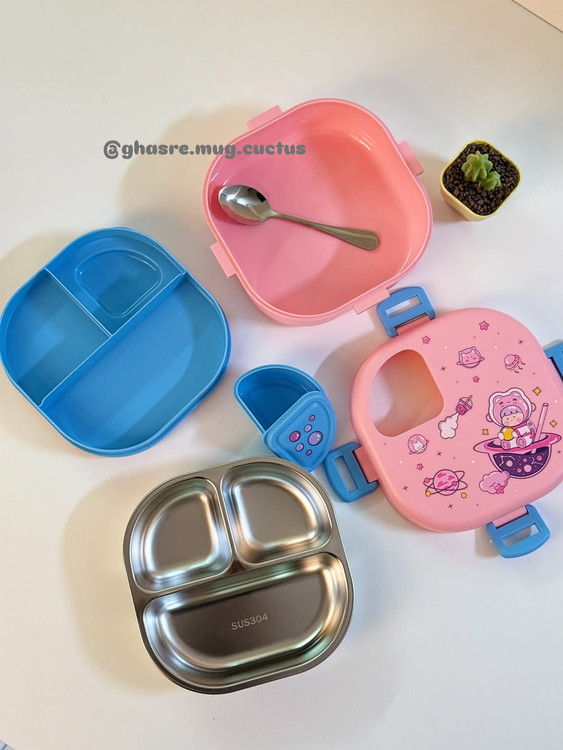 واععااااییی که دلم رفـــــــت برای این کیفیت و خوشگلی 😭🥹😍لانچ باکس همههه چی تموووم هم داخل استیل هم قاشق استیل داره هم کاسه داره هم یک و نیم طبقه هم هر قسمتش جداگانه واشر دارهههه