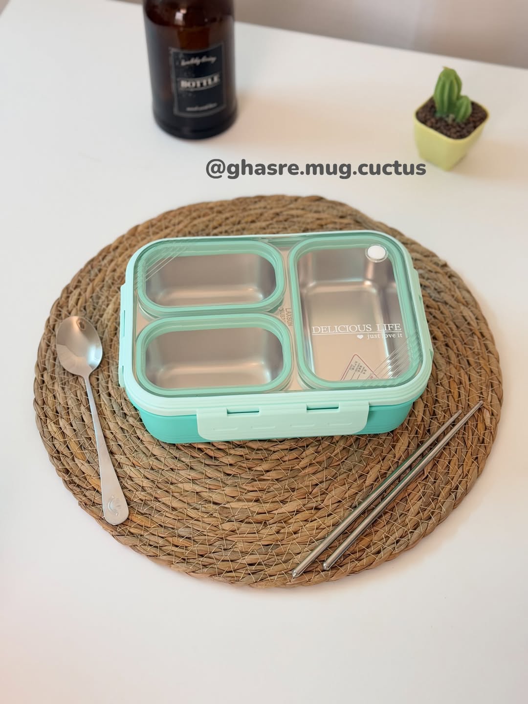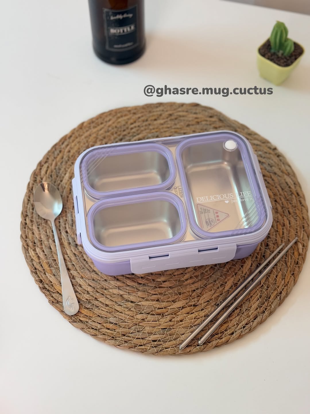 🌵دارای جای قاشق در زیر محفظه استیل در ظرف غذا