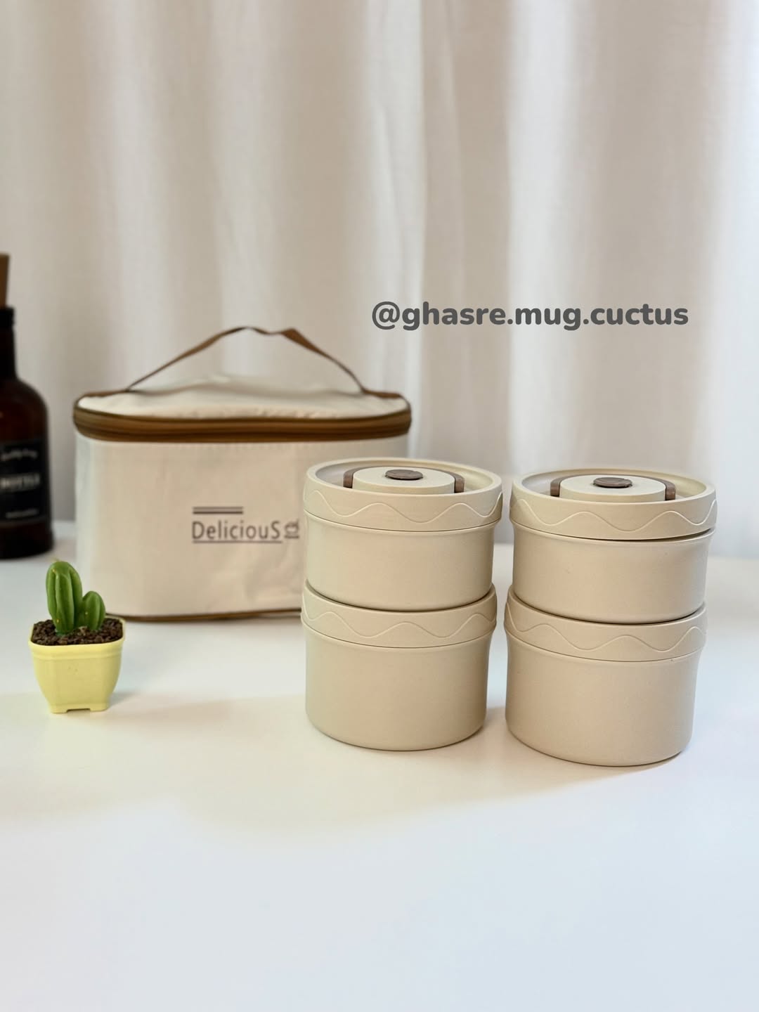 ظرف غذا چهار قلو ماکرویوی همراه کیف غذا عایق کد 159