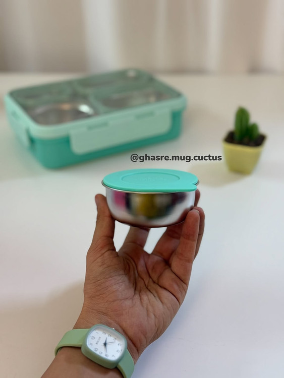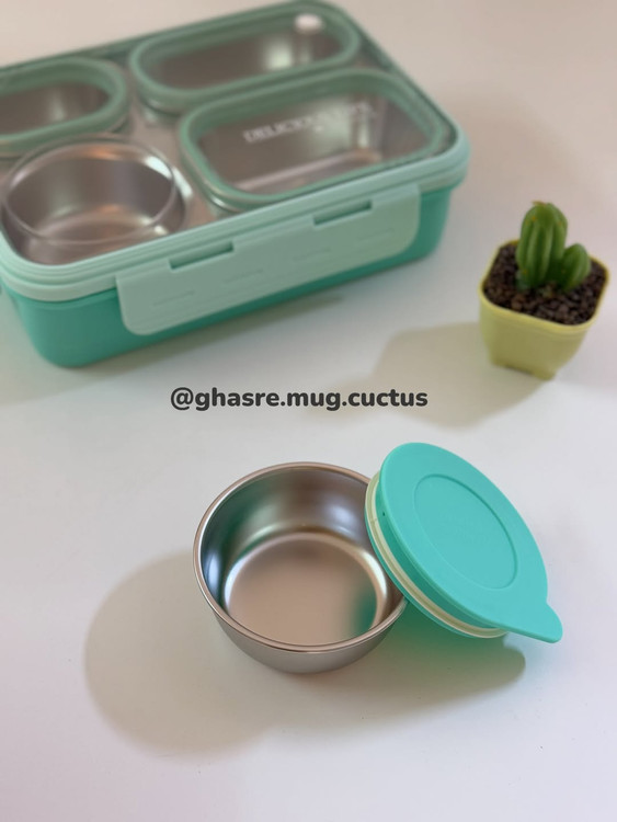 🌵دارای جای قاشق در زیر محفظه استیل در ظرف غذا