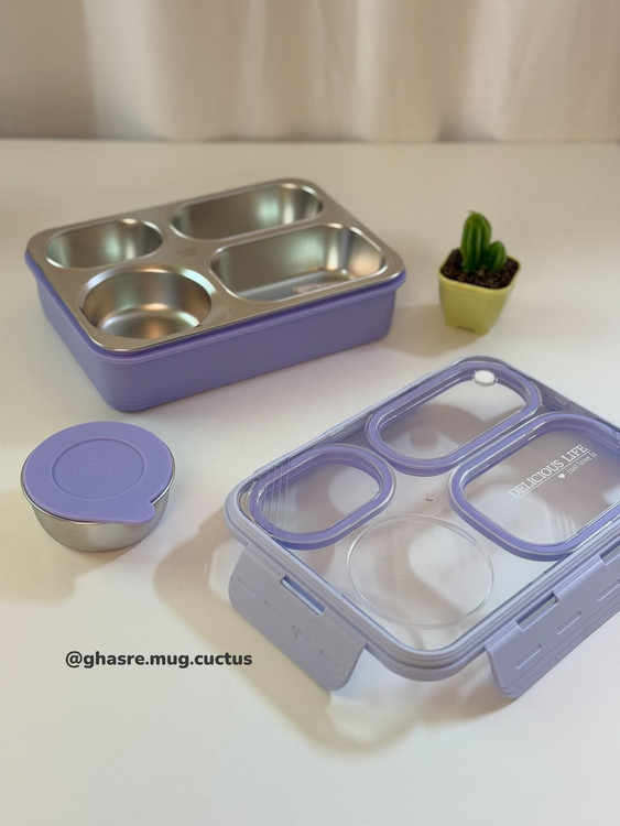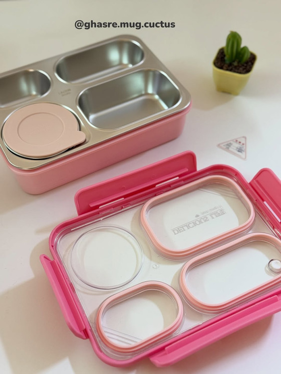🌵محفظه استیل ۴ قسمته هست و قابلیت جدا شدن از قسمت پلاستیکی رو داره