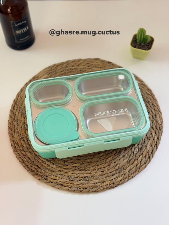 ظرف غذا چهار قسمتی هست و از استیل 304 ضد زنگ قوی😍
