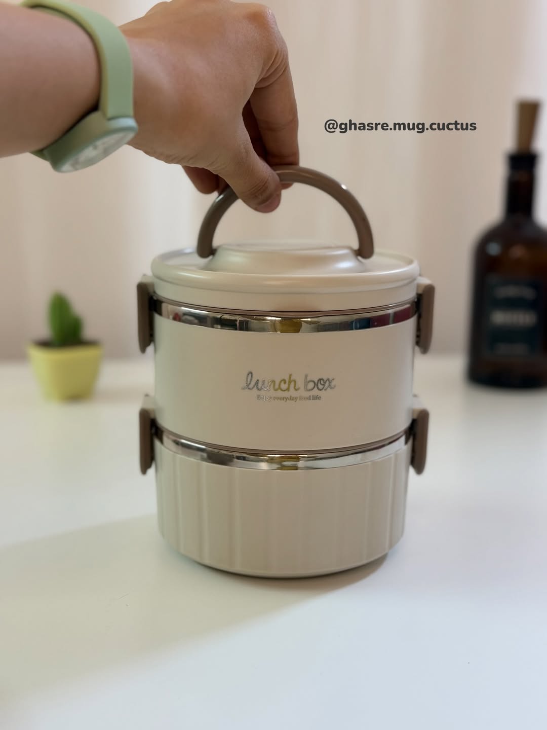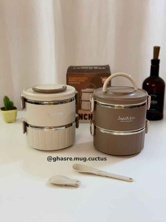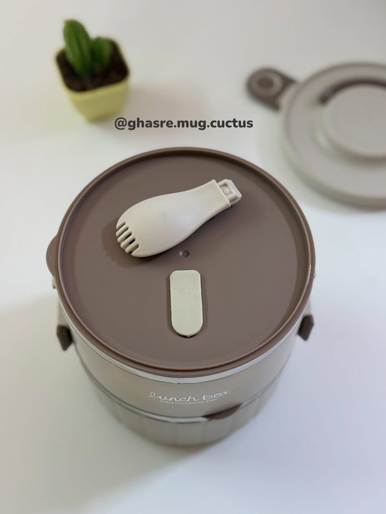 🌵لانچ باکس استوانه دو طبقه داخل استیل