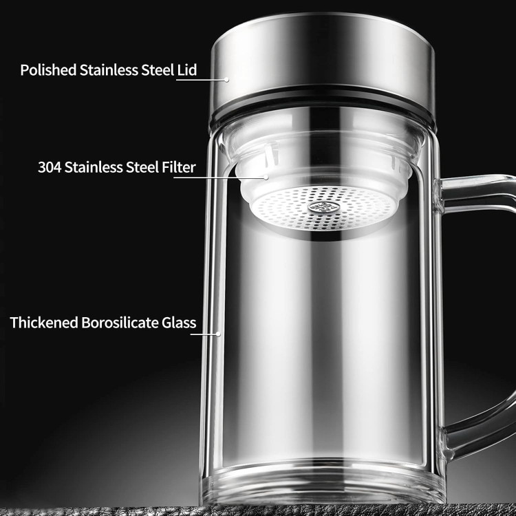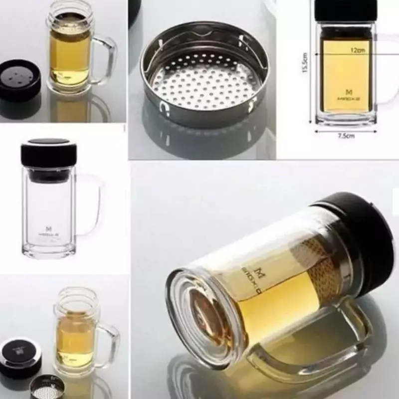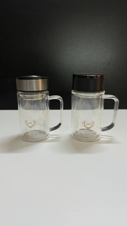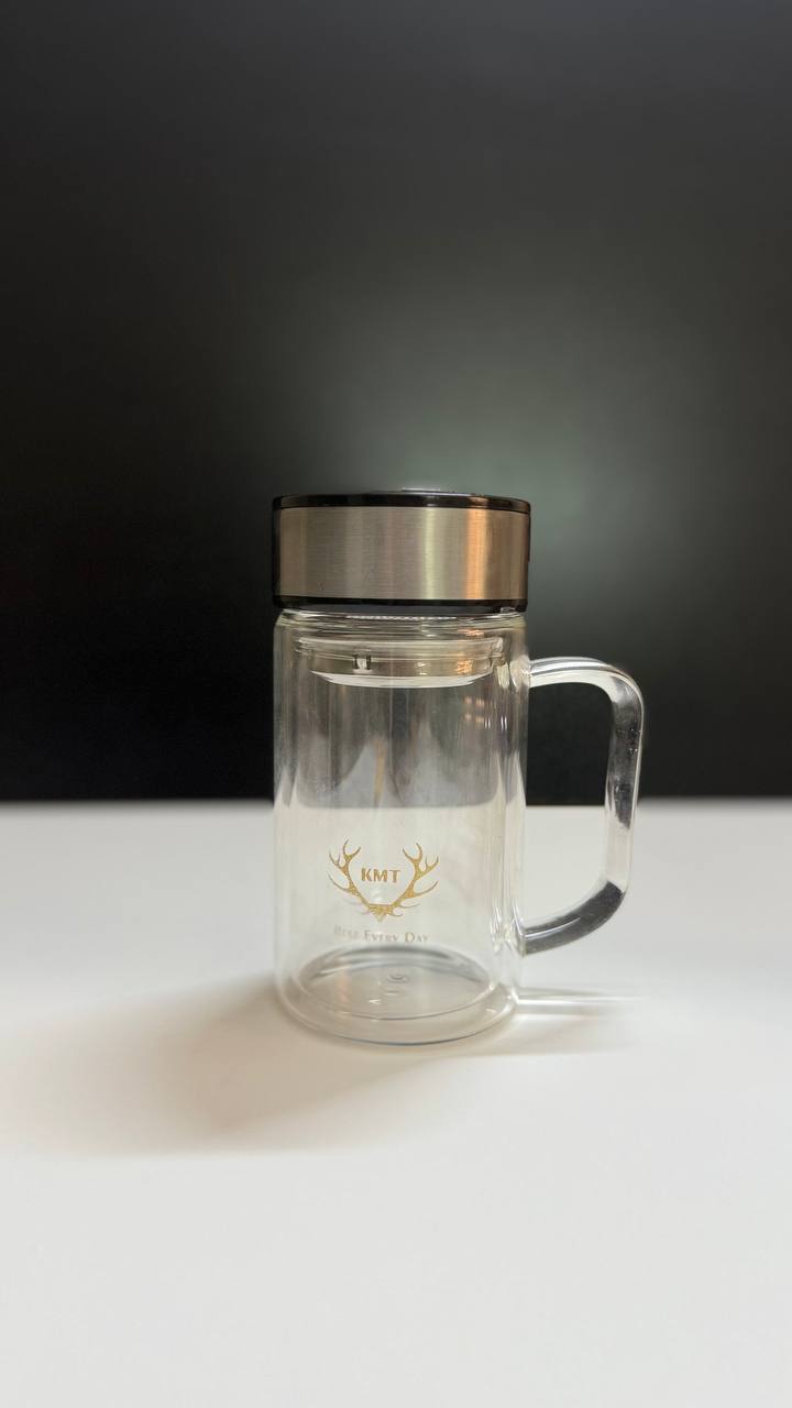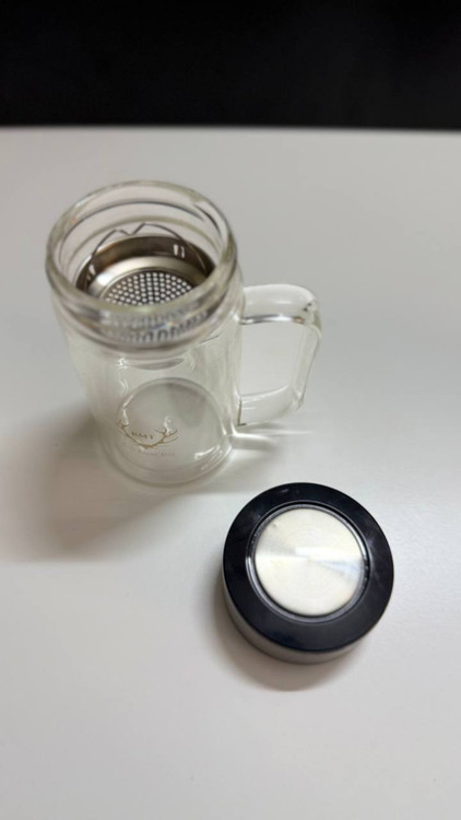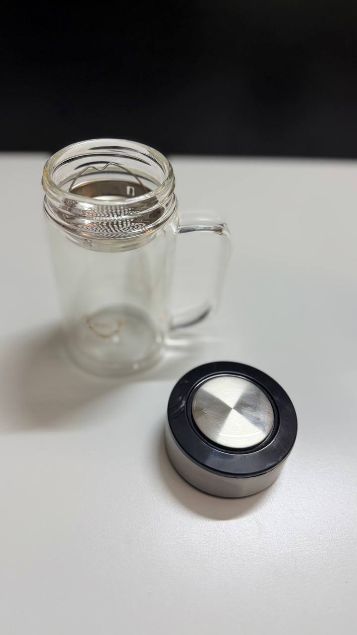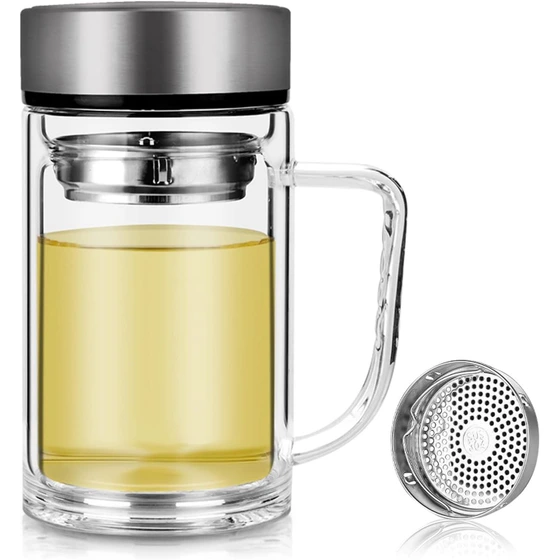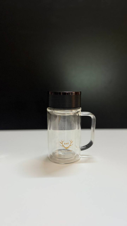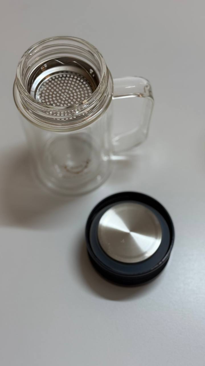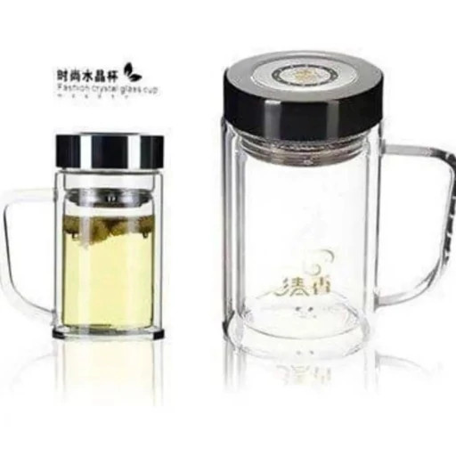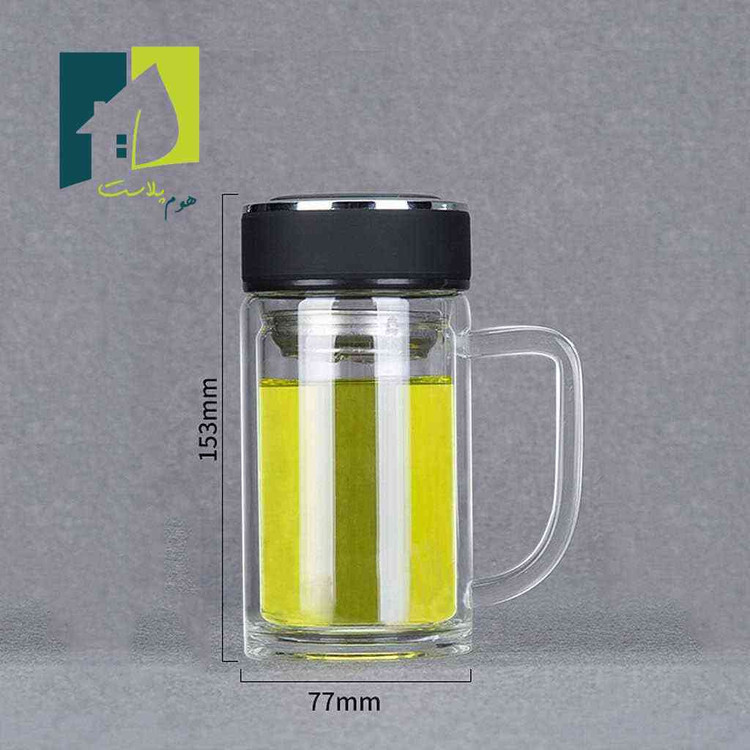 دمنوش خوری دو جداره پیرکس درب دار + صافی استیل