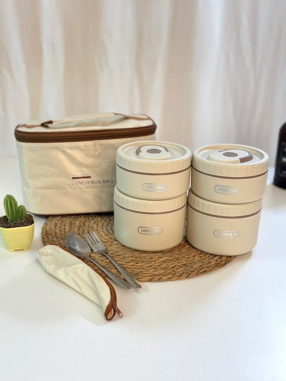 ظرف غذا ۴ قلو داخل استیل همراه کیف غذا و قاشق و چنگال استیل و کاور