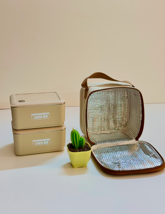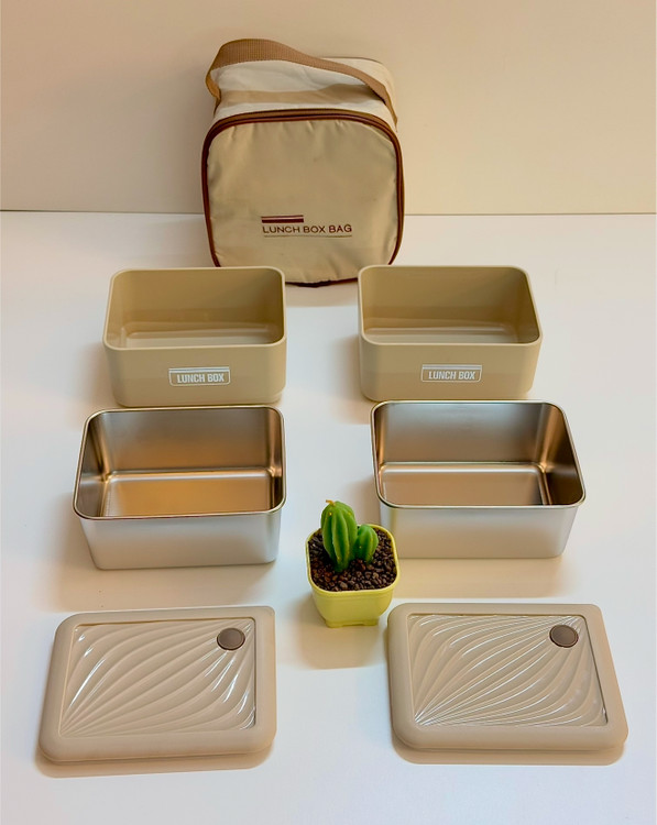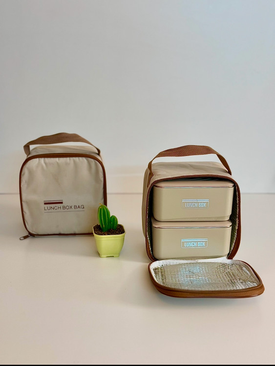 🌵ظرف غذا دو طبقه همراه با لانچ بگ