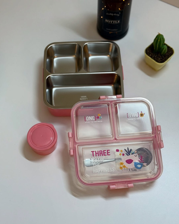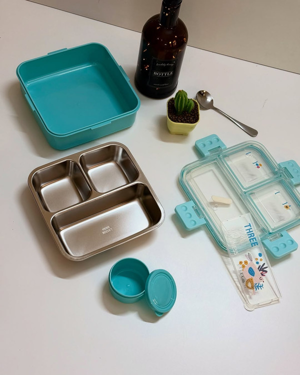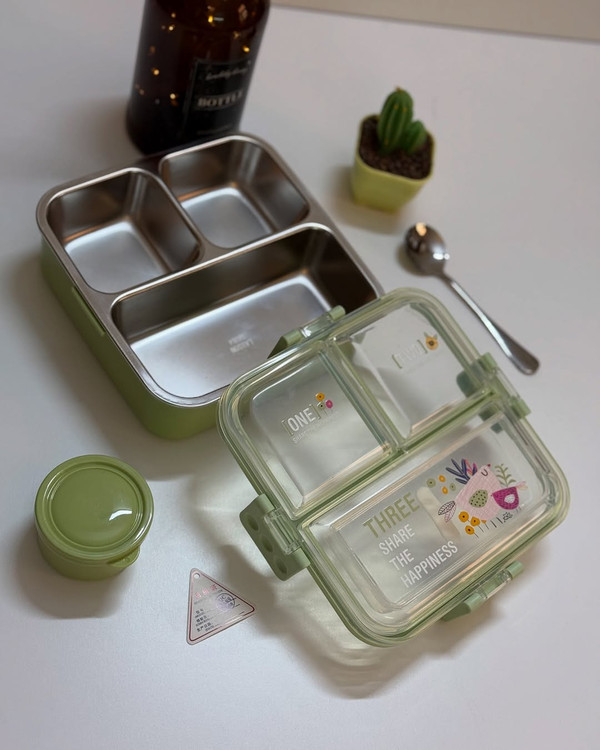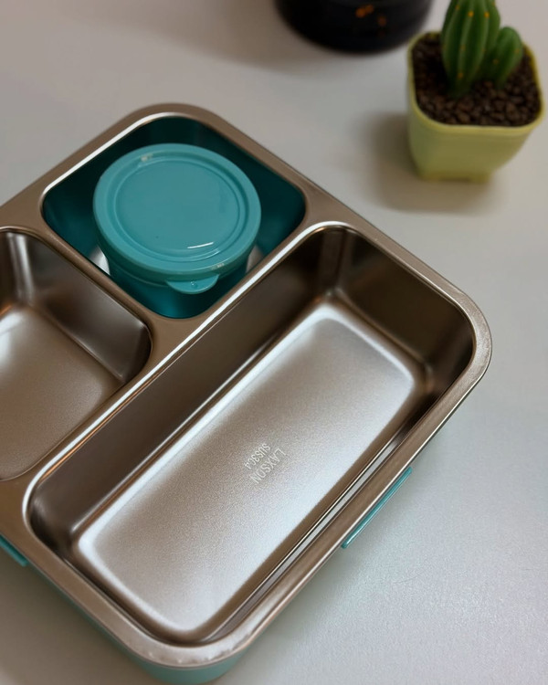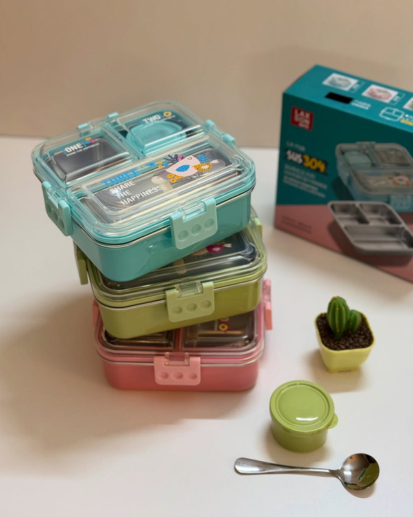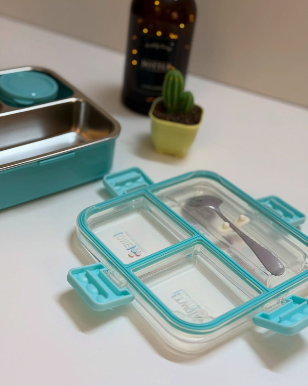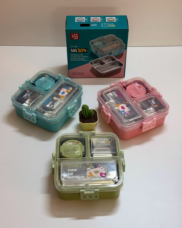 ظرف غذا سه خانه کاسه دار واشردار این ظرف غذا دارای واشر کاسه و قاشق استیل میباشد این ویژگی این محصول رو خیلیی خاص کرده محصول وارداتی و High quality اینکه هر قسمت جداگانه واشر داره باعث میشه تا مواد غذایی اصلا باهم دیگه مخلوط نشن یک کاسه کوچک هم داره برای ماست،ترشی،زیتون و …. این محصول دارای قاشق استیل ضخیم و کیفیت بالا میباشد ظرف غذا سه قسمتی هست و از استیل 304 ضد زنگ قوی ویژگی ها: ظرف غذا سه قسمته واشر دار دارای کاسه درب دار هر قسمت جداگانه واشر داره و مواد غذایی باهم دیگه مخلوط نمیشه دارای قاشق استیل ضخیم محفظه استیل سه قسمته هست و قابلیت جدا شدن از قسمت پلاستیکی رو داره دارای ۴ قفل لولایی و سراسری دور تا دور ظرف دارای جای قاشق در بالای در ظرف غذا دارای سه رنگ سبز آبی و صورتی دارای جعبه
