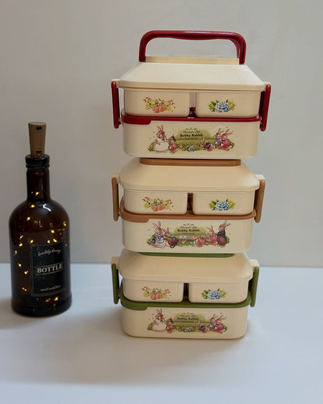 متاسفانه این کالا در حال حاضر موجود نیست. میتوانید از طریق لیست بالای صفحه، از محصولات مشابه این کالا دیدن نمایید.اتمام موجودی ارسال رایگان فقط ۳۵۰ تعداد خیلیی محدود فرصت طلایی بعضیا ازین فرصت استفاده میکنند و بعضیا راحت ازش میگذرن… ظرف غذا خرگوشی دو طبقه بسیاار جمع و جور و با کیفیت وارداتی و محصول ابعاد: طول ۱۹ عرض ۱۴ ارتفاع ۱۲ با ارسال رایگان تعداد بسیااار محدود ویژگی ها: این کار BPA Free هست دو طبقه و هر طبقه جداگانه در دارد دارای قاشق و چنگال با کیفیت و مقاوم دارای دسته های تاشو که جاگیر نباشد دارای قفل های لولایی بسیار با دوام با عمر بالا تحمل دما از منفی 20 تا مثبت 120 درجه سانتی گراد تولید چین موجود در سه رنگ زرشکی کرم ،سبز کرم، شکلاتی کرم
