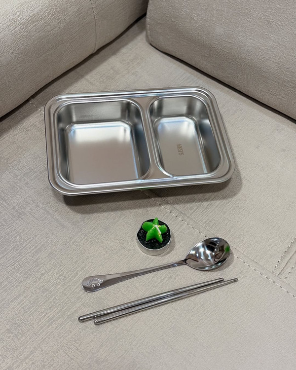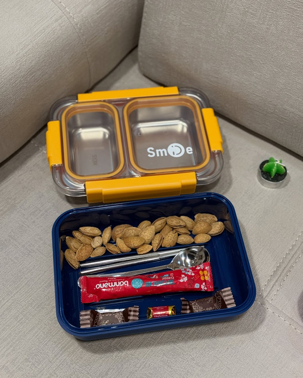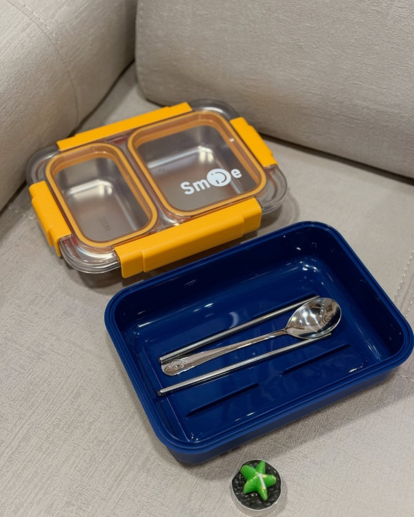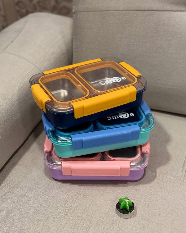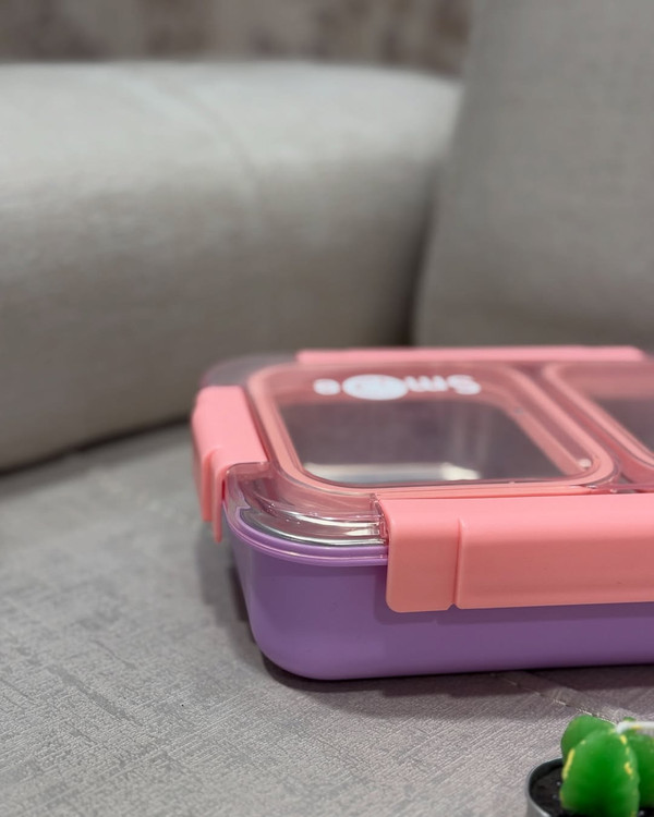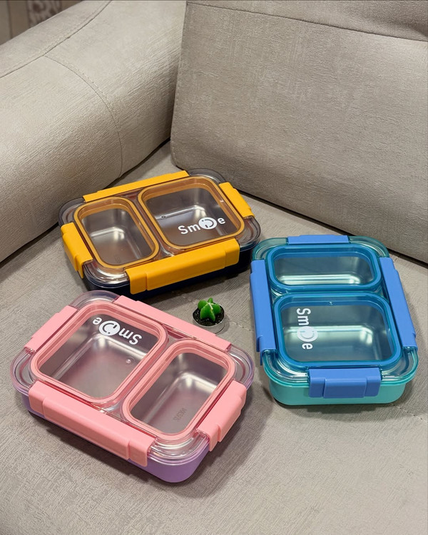 برررند Smile کیفیت واشر و قفلاش حرف اولو میزنه کیفییییت زیبایی جاداری همه تو یک محصولدیگه غذاهای مخلوط شده و بدریخت نخور شما ضخامت و کیفیت واشر ببین حتی اکر ابکی هم بریزید نه بیرون میریزه و ن مخلوط میشه ابعاد: حجم ۷۵۰ میل طول ۲۳ سانت عرض ۱۶ سانت ارتفاع۶ سانت یه کار جمع و جور و عالی برای ته کیف برای سرکار تو قسمت پلاستیکیش هم میتونید یک سری خوراکی قرار بدید ویژگی ها: ظرف دو قسمته واشر دار اسمایل هر قسمت جداگانه واشر دارد و غذاتون باهم مخلوط نمیشه استیل ۳۰۴ ضد زنگ قوی دسته ها لولایی با عمر بالا و با دوام استیل قابلیت جدا شدن دارد و داخل فر و توستر میشه گذاشت واشر ها قابلیت جداشدن دارند برای شست و شو در محفظه پلاستیکی قاشق و چاپستیک استیل دارد دارای سه رنگ سورمه ای زرد،ابی روشن , یاسی صورتی دارای جعبه