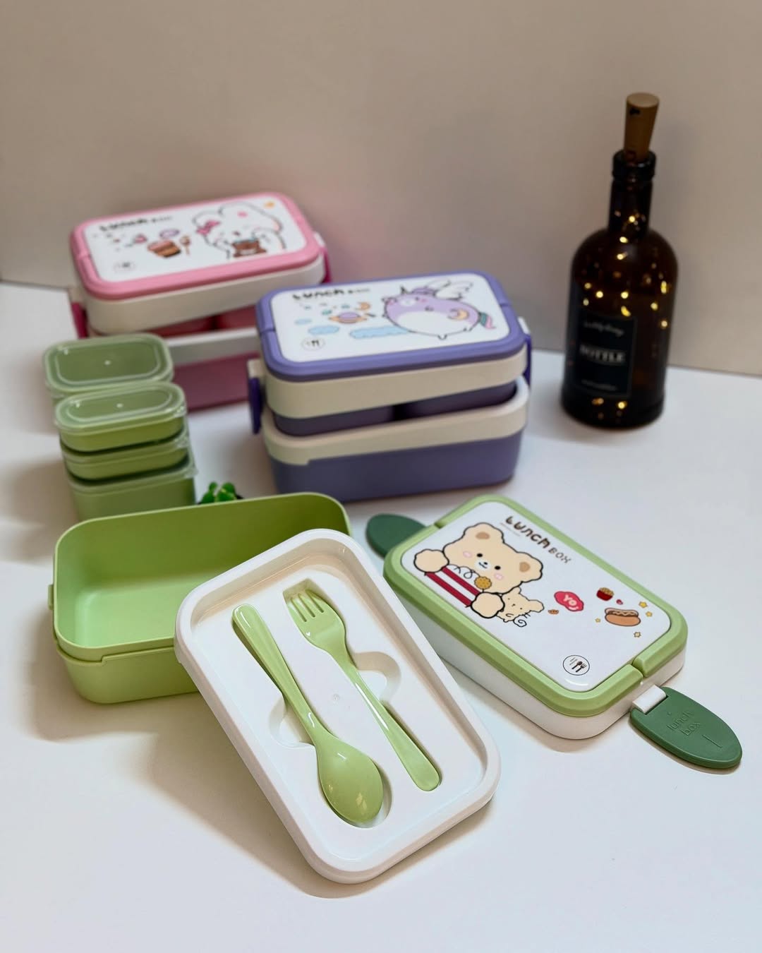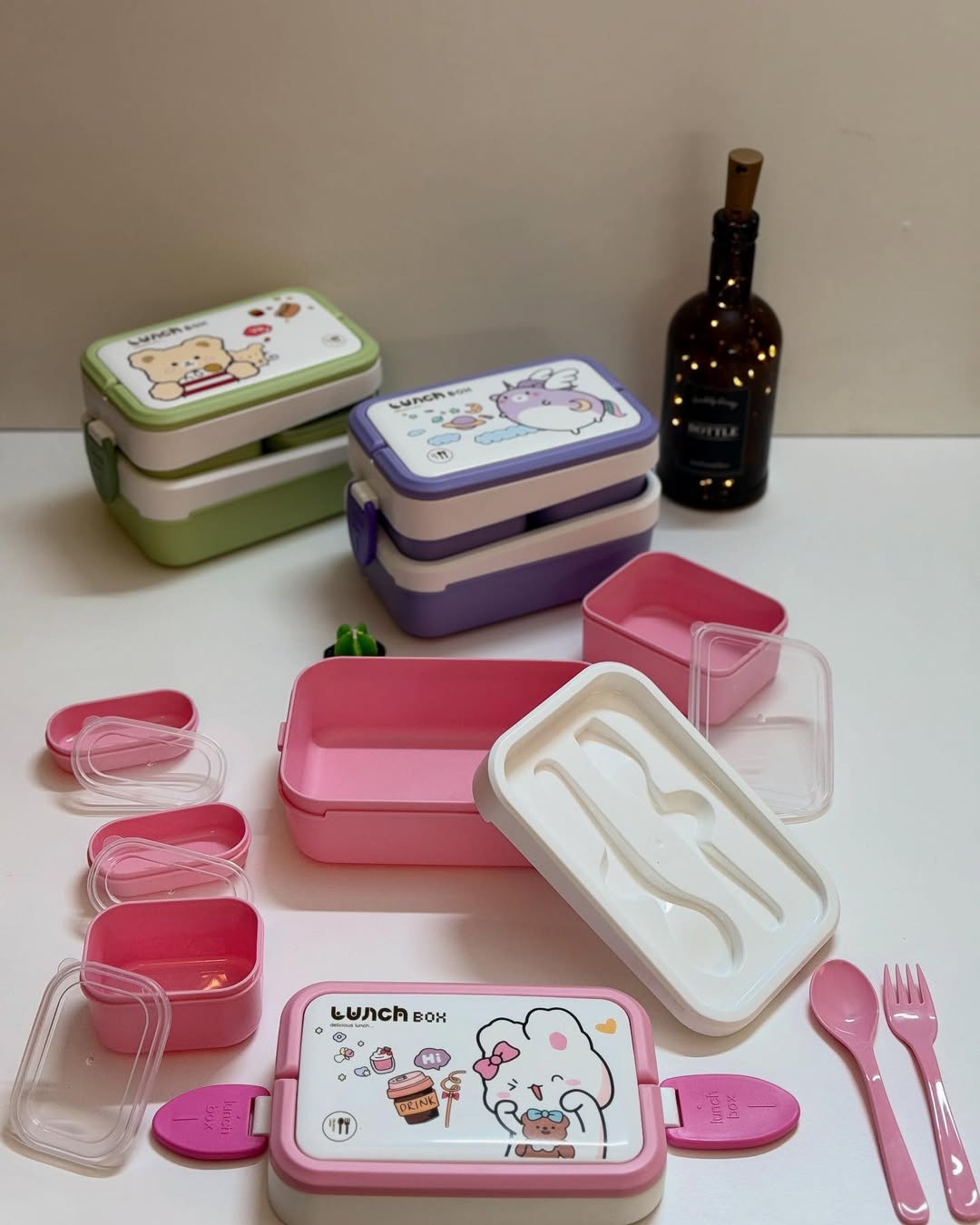 ظرف غذا پنج قسمته درب دار طرح دار کودک
