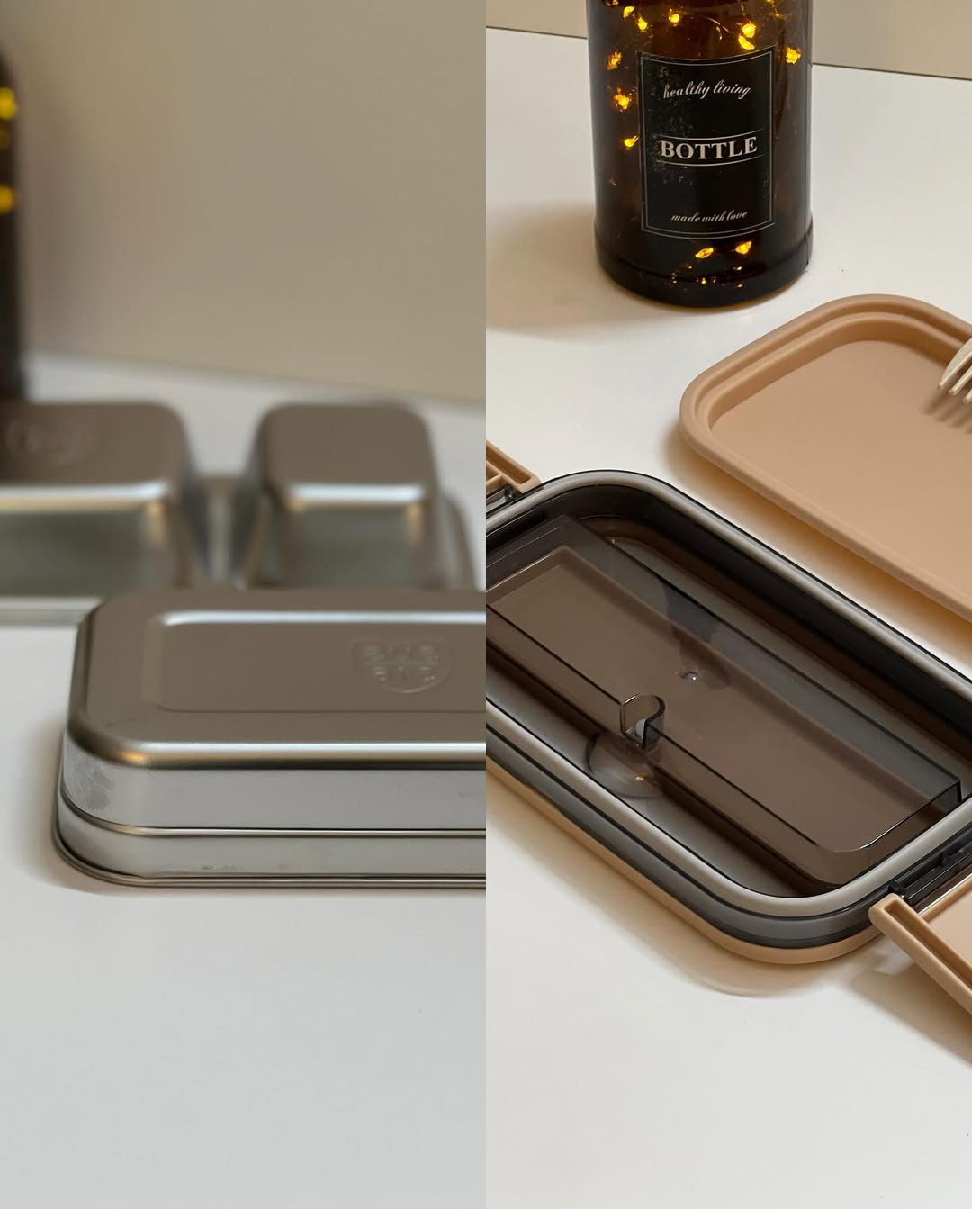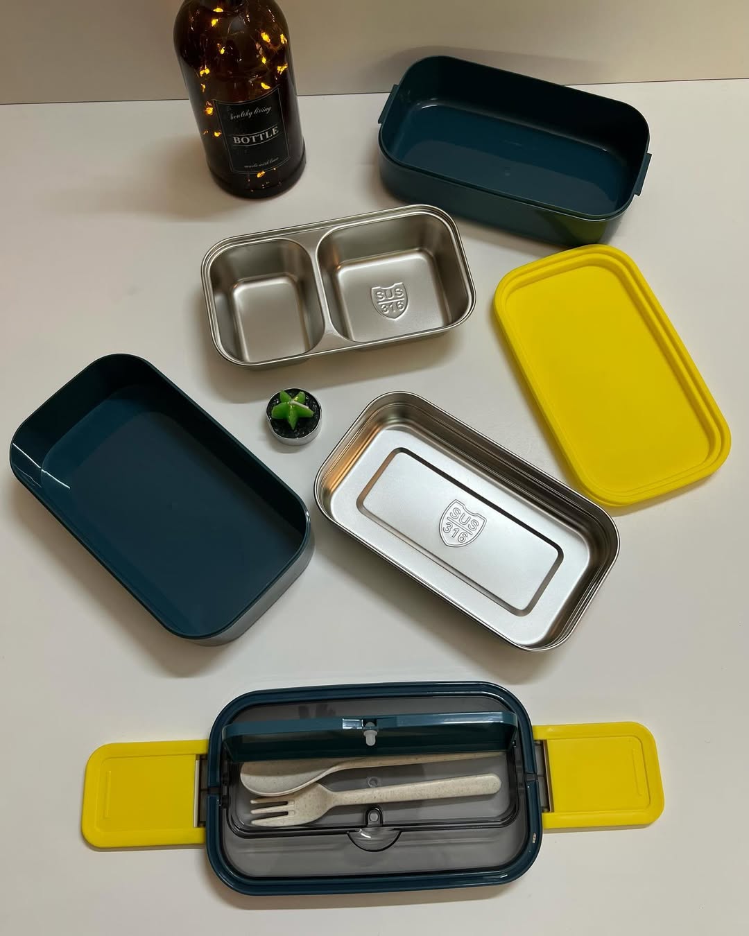 ظرف غذا دو طبقه داخل استیل مستطیل