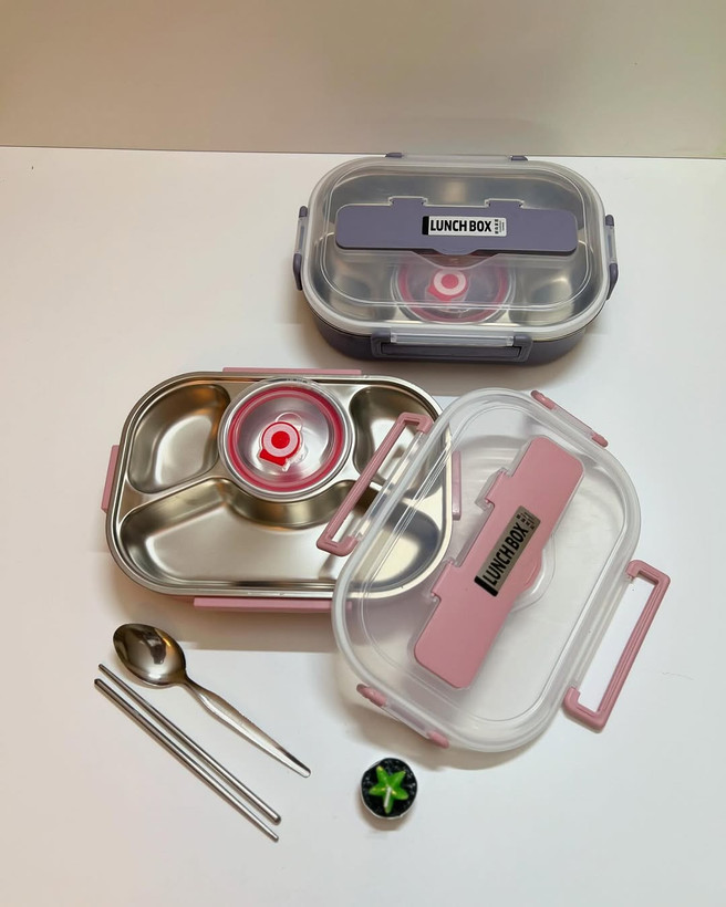 متاسفانه این کالا در حال حاضر موجود نیست. میتوانید از طریق لیست بالای صفحه، از محصولات مشابه این کالا دیدن نمایید. لانچ باکس کاسه دار با این قیمت؟؟؟ هم کاسه داره هم استیله هم قاشق و چاپستیک استیل دارهدیگه چی میخوایییی؟؟؟ این کار به شددددت محدوده برا همین با ی منصفانه براتون گذاشتم که بتونید راحت بخریدش ابعاد: طول ۲۶ عرض ۲۰ ارتفاع۸ ضخامت استیل : این کار خوبیش اینه که میتونی ماستتو بریزی تو کاسش و نشتی نده ویا حتی خورشتتو خوبش فقط و فقط : ماکروفری و استیلش هم میتونید راحت بذارید داخل فر چون ۳۰۴ هست ویژگی ها: لانچ باکس داخل استیل و کاسه دار قاشق و چاپستیک استیل کاسه درب دار جداگانه و با استیل ۳۰۴ کاسه واشر دار و بدون نشتی کاسه دارای سوپاپ هوا استیل ۳۰۴ ضد زنگ و جداشونده دور در واشر دارد دارای جای قاشق روی درب جنس بدنه پلاستیک فشرده BPA FREE و فاقد مواد مضر قابل استفاده در ماکرویو و فریزر دارای ۴ گیره سراسری و روان دارای دو رنگ صورتی کثیف و بادمجونی