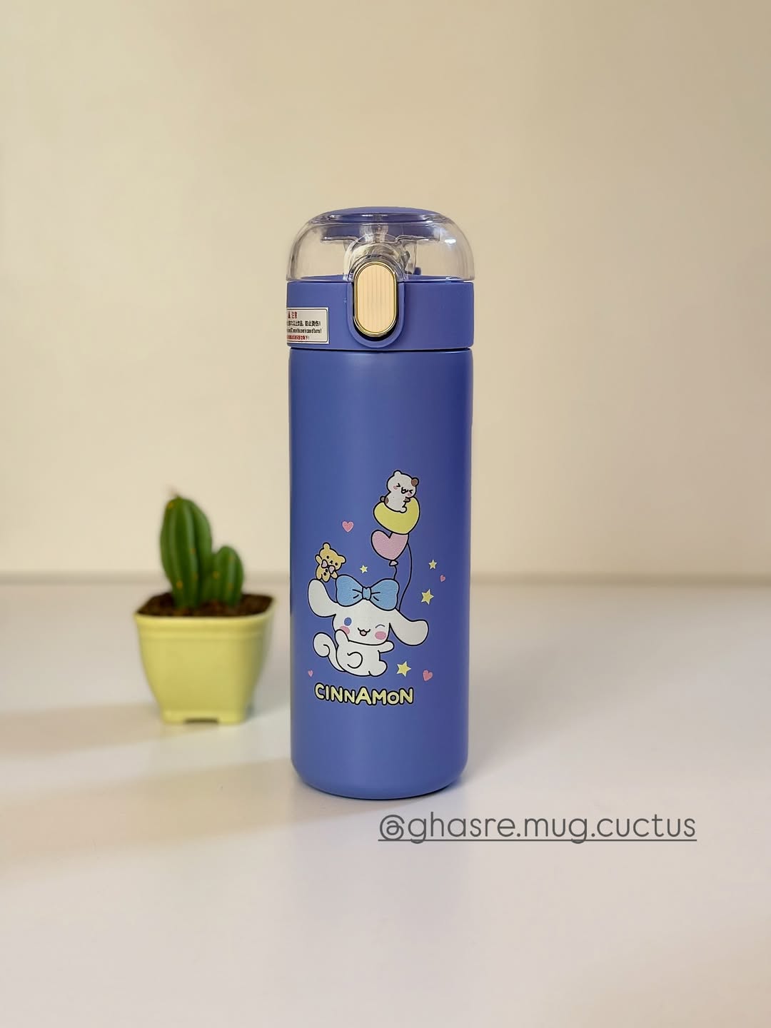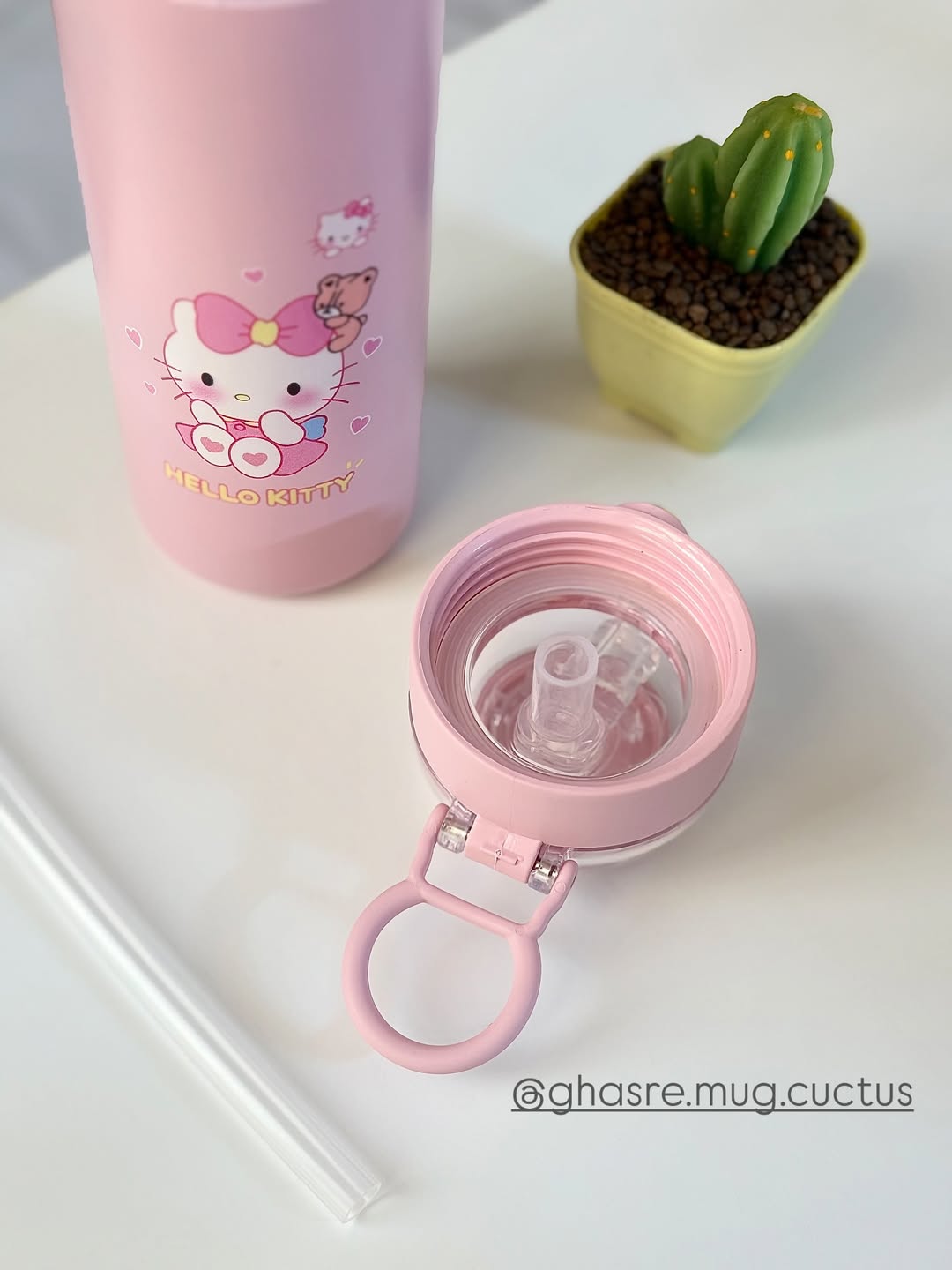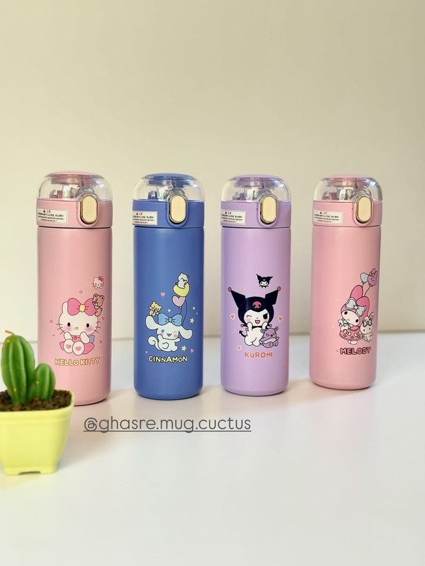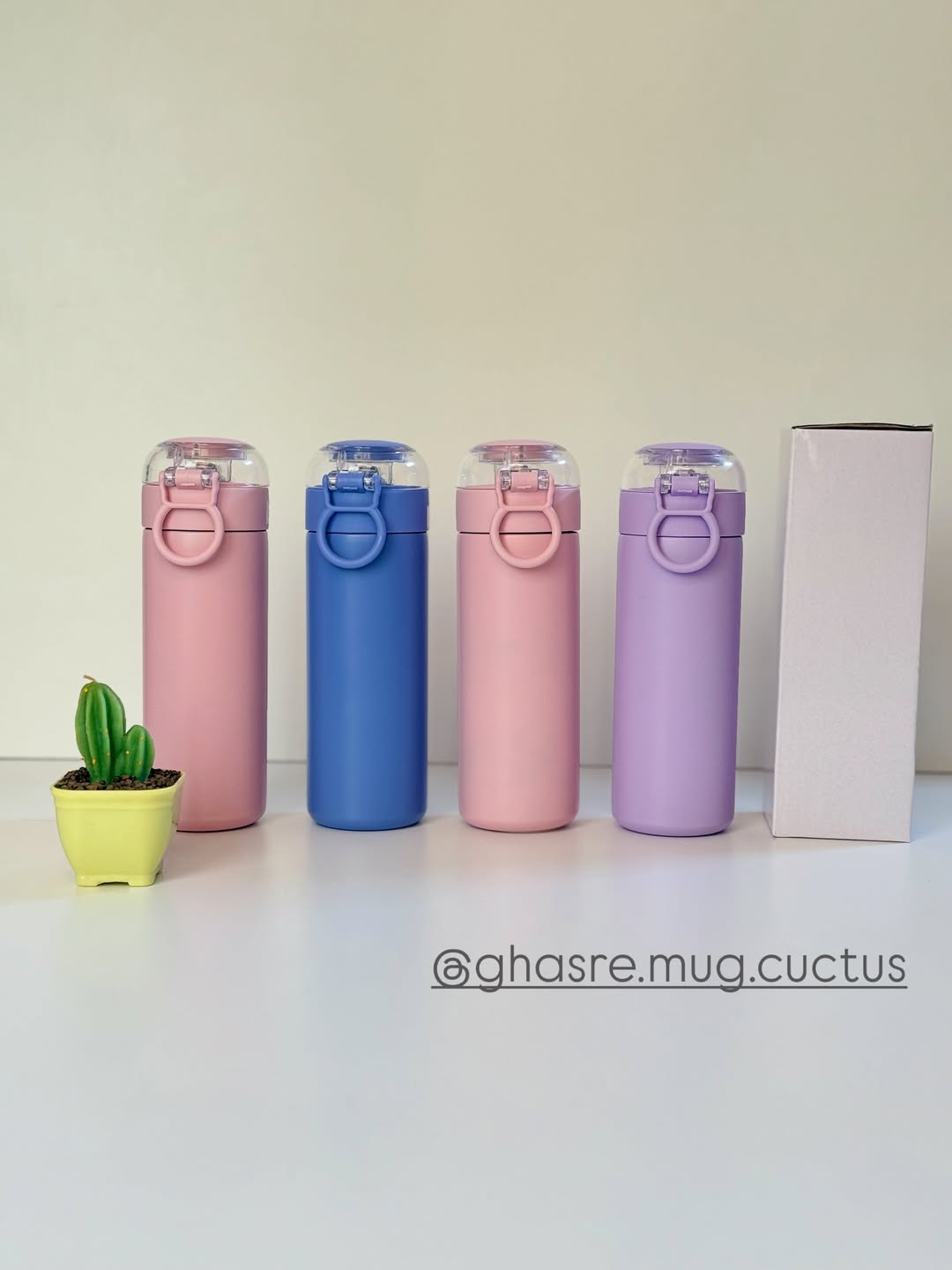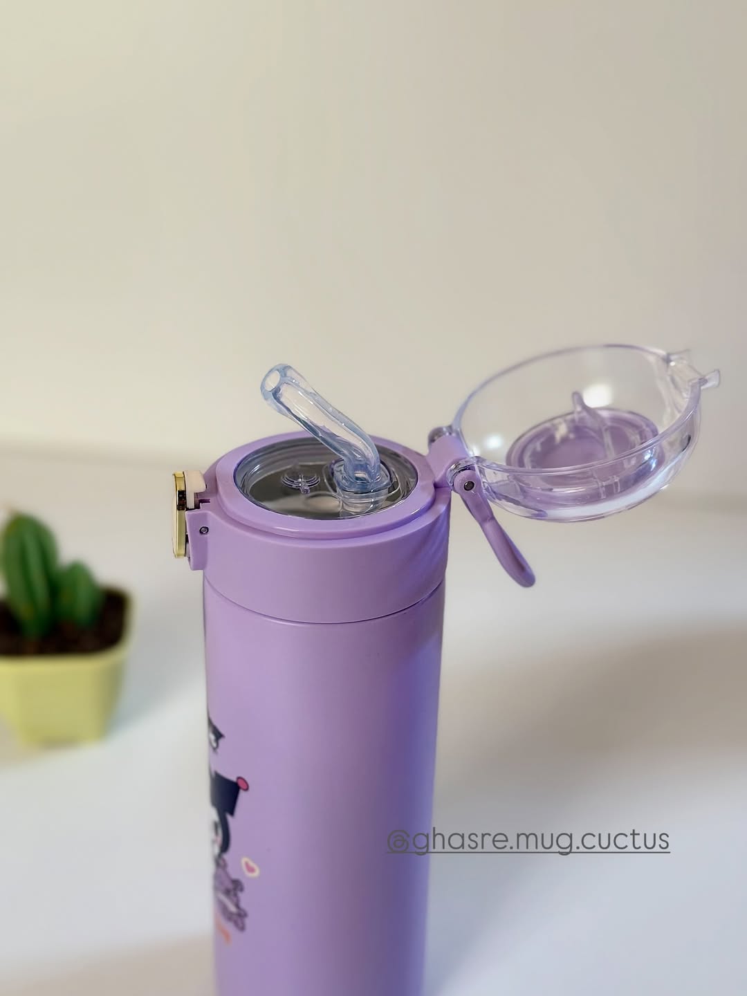 قمقمه داخل استیل کرومی و دوستان همراه نی سیلیکونی