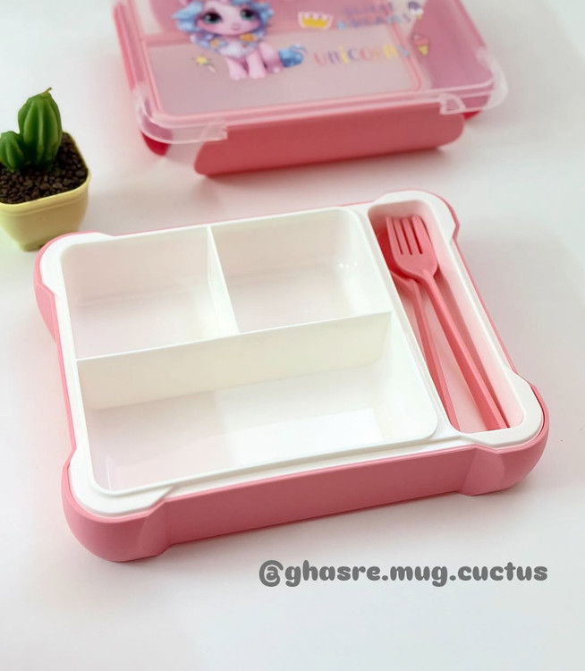 ظرف غذای واشر دار ۴ قسمته کودک بدون مخلوط شدن مواد غذایی واشر دار در هر قسمت به صورت جداگانه ظرف غذا وارداتی HIGH QUALITY دارای دستگیره های چقت به بدنه تا جاگیر نباشد به دلیل اینکه هر قسمت جداگانه واشر داره دیگه خوراکیا بچه ها باهم قاطی نمیشه! حتی میتونید به صورت عمودی هم داخل کیف بذارید داخل ماکرویو ، فریزر و ظرفشویی هم میتونید با خیال راحت بذارید چون پشتش حک شده (اسلاید آخر) دیگه چی ازین بهترررر؟؟؟ ابعاد: طول ۲۲ سانت عرض ۱۷ سانت ارتفاع ۶ سانت به طور کامل تغذیه یه بچه معمولی در مدرسه جواب میده ویژگی های: ظرف غذا واشر دار بدون مخلوط شدن مواد غذایی دارای ۴ قسمت جداگانه و جادار دارای قاشق و چنگال همرنگ ظرف و با کیفیت دارای استاندارد درجه خوراکی و BPA FREE و فاقد مواد مضر هنگام گرم شدن مواد مضر از خود آزاد نمیکند دارای ۴ گیره سراسری و روان گیره ها به طور کامل داخل ظرف میرن و جاگیر اصلا نیستن به دلیل داشتن واشر از مخلوط شدن مواد و بیرون ریختنش تا حد خیلی زیادی غذایی جلو گیری میشه دارای ۳ رنگ صورتی ، سبز، بنفش