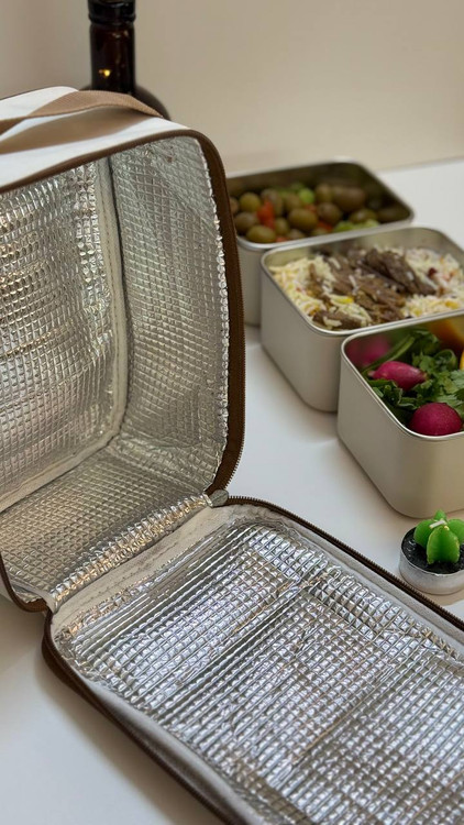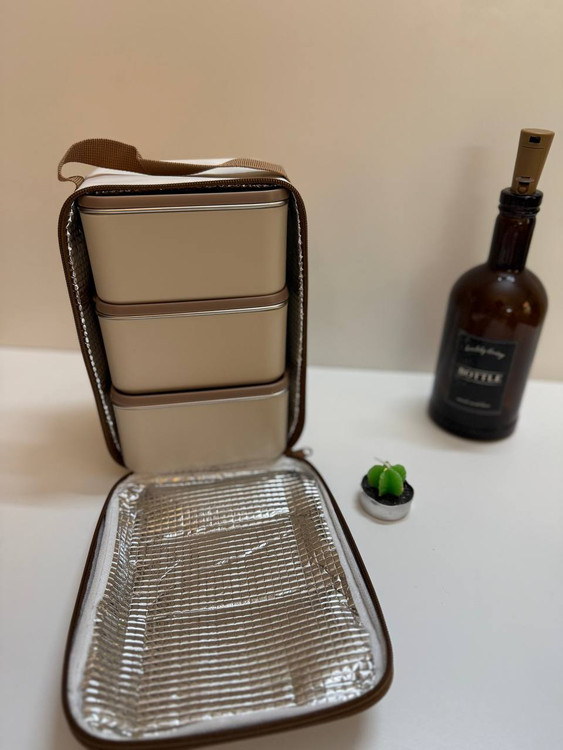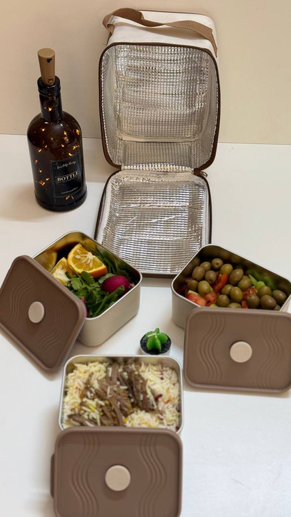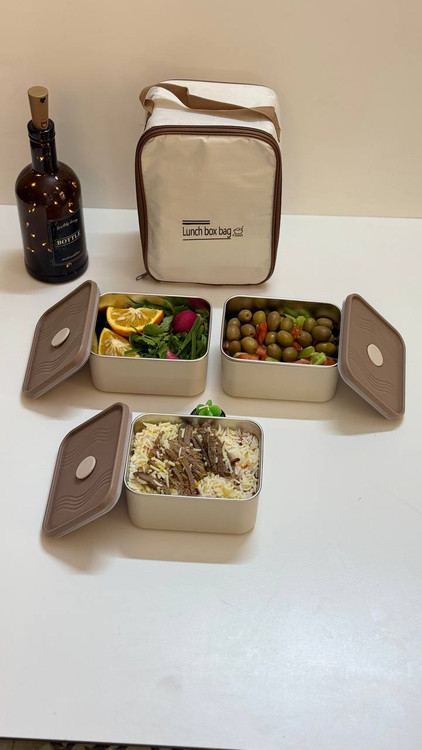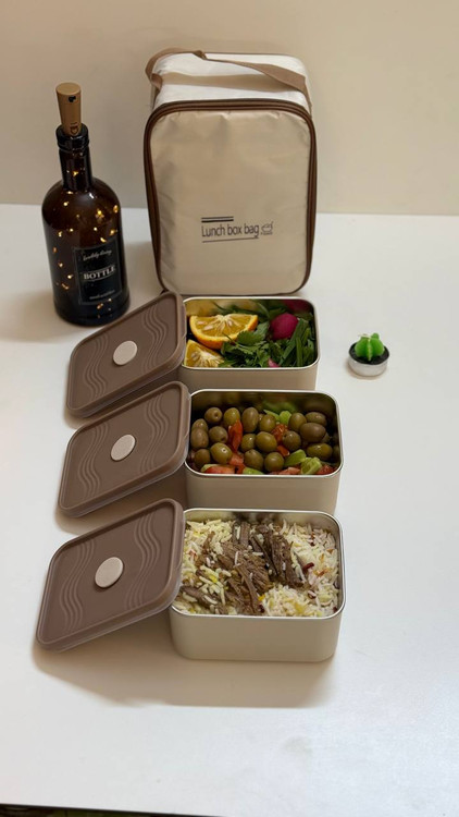 ظرف غذا سه طبقه مستطیلی همراه کیف غذا داخل عایق