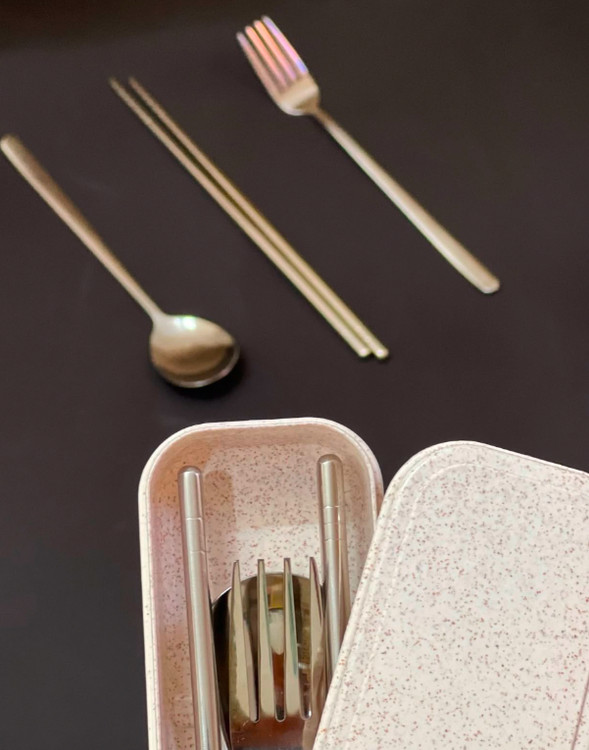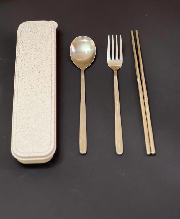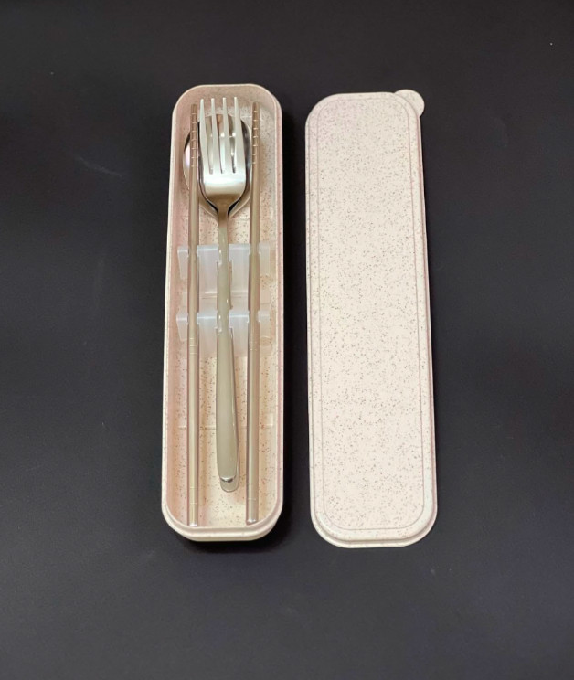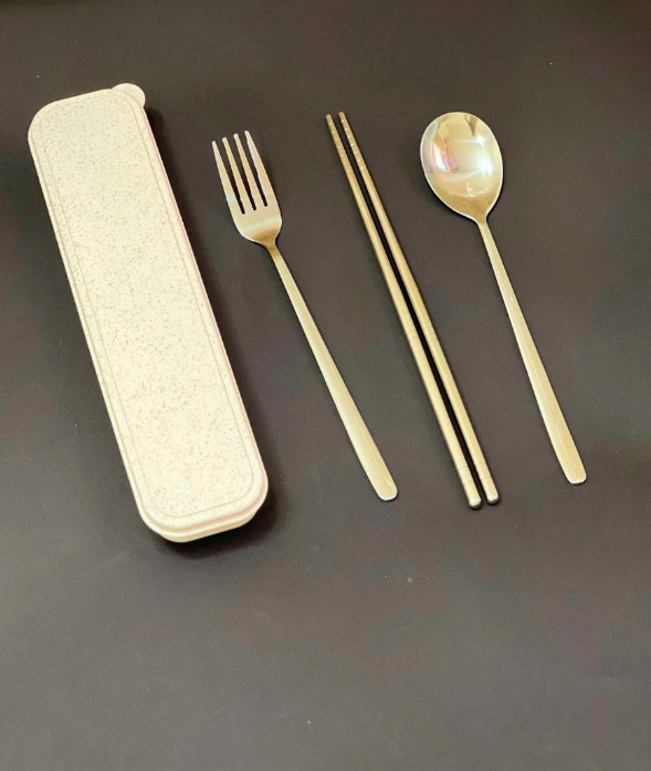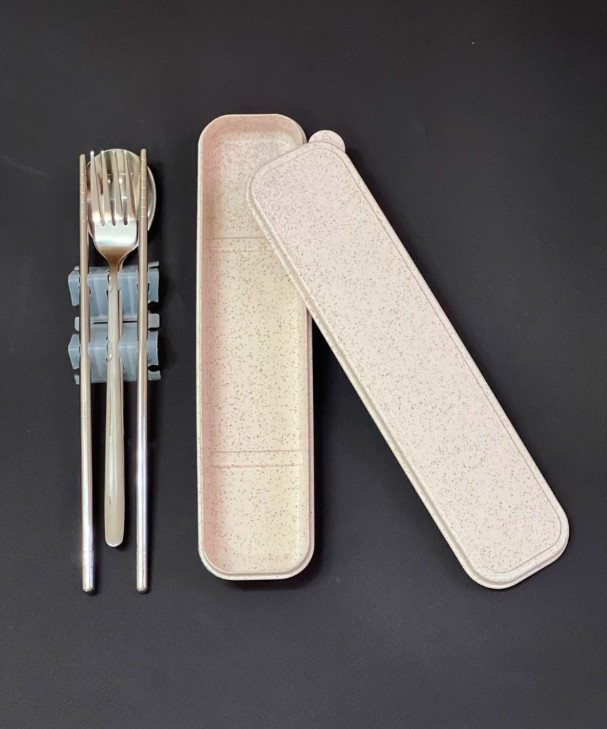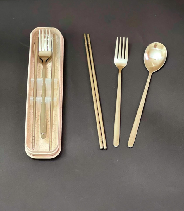 🌵ست قاشق ،چنگال، چاپستیکس استیل به همراه پک