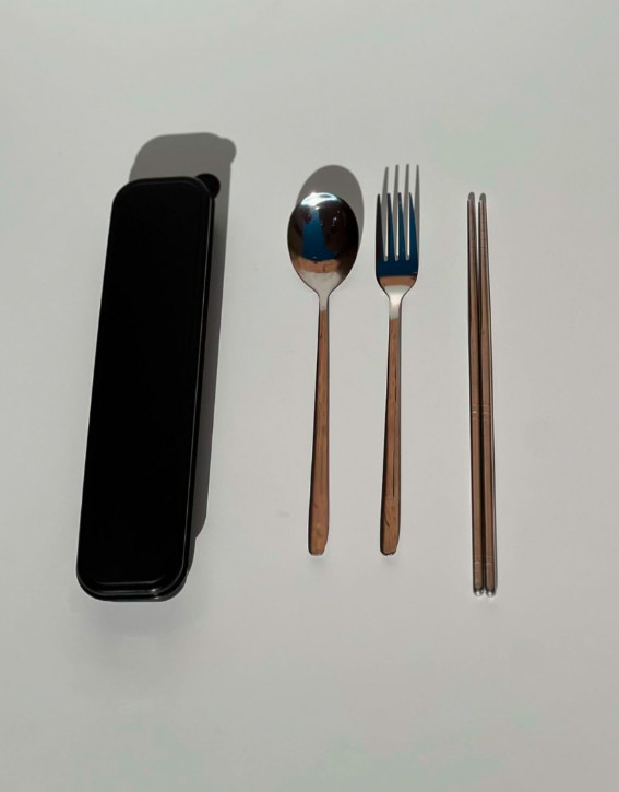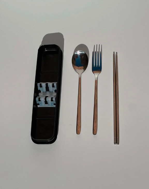 پک مشکی قاشق و چنگال و چاپستیک استیل شخصی