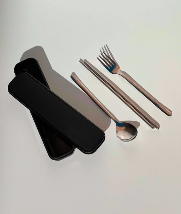 پک مشکی قاشق و چنگال و چاپستیک استیل شخصی