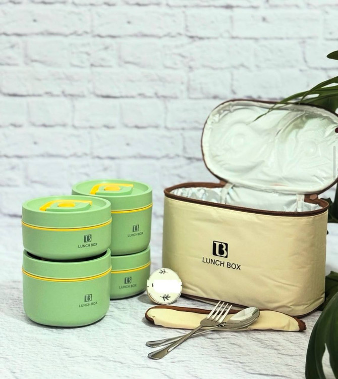 ظرف غذا ۴ قلو +کیف غذا+قاشق استیل و چاپستیک استیل +کاور مخصوص